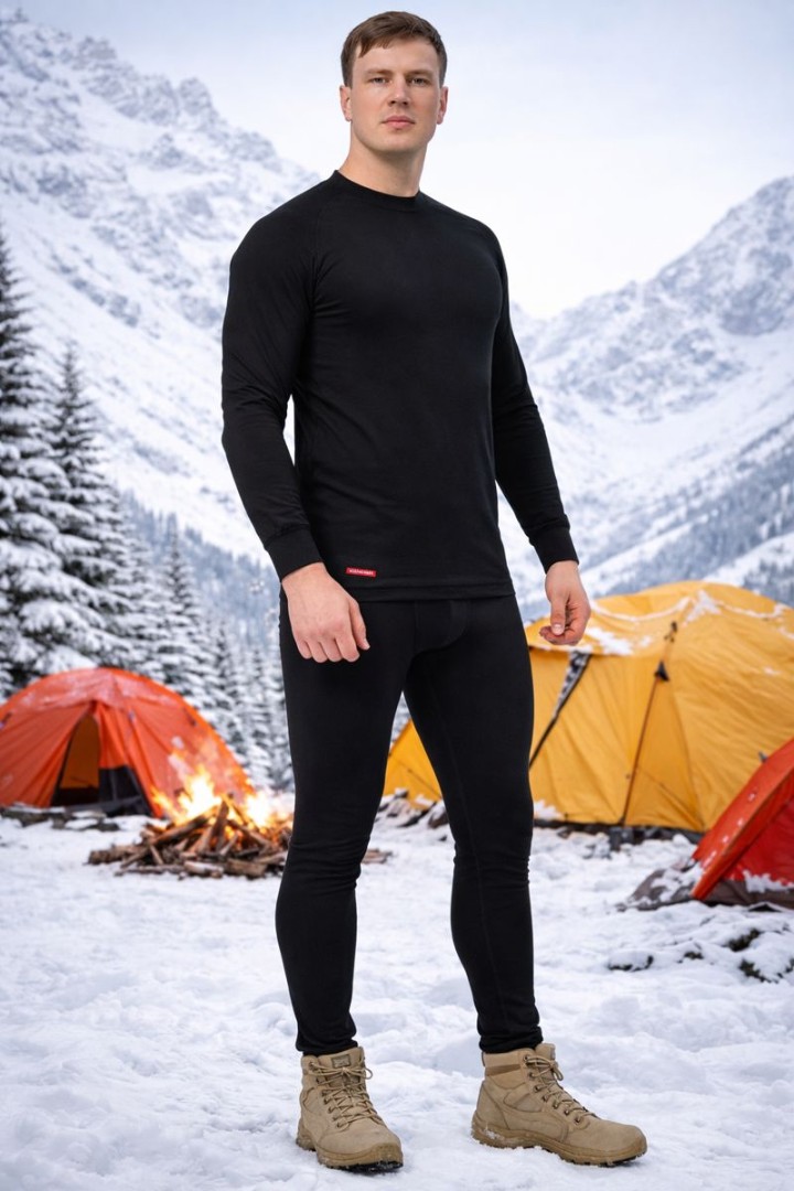 Термокомплект «Комфорт Норд» — это надежное мужское термобелье для повседневного использования в условиях прохладной и холодной погоды, сочетающее комфорт, тепло и высокую функциональность. Однослойное полотно плотностью 220 г/м² выполнено из оптимального состава 80% хлопок и 20% полиэстер Sunlite, что обеспечивает идеальный баланс натуральности, износостойкости и эффективной терморегуляции при температурах до −20 °C. Инновационный многофиламентный полиэстер Sunlite с канатной структурой полинитей активно отводит влагу от поверхности тела, не намокает и быстро высыхает, а микропустоты в плетении удерживают нагретый воздух, поддерживая стабильный тепловой баланс и защищая от переохлаждения. Натуральный хлопок делает термобелье мягким, дышащим и приятным к телу, обеспечивая высокий уровень комфорта при длительной носке. Плоские швы предотвращают натирание, а гипоаллергенные и антибактериальные свойства материалов подходят даже для чувствительной кожи. Практичное, прочное и формоустойчивое термобелье «Комфорт Норд» идеально подходит для работы на улице, прогулок, активного отдыха и ежедневной носки в холодный сезон, обеспечивая сухость, тепло и максимальное удобство.