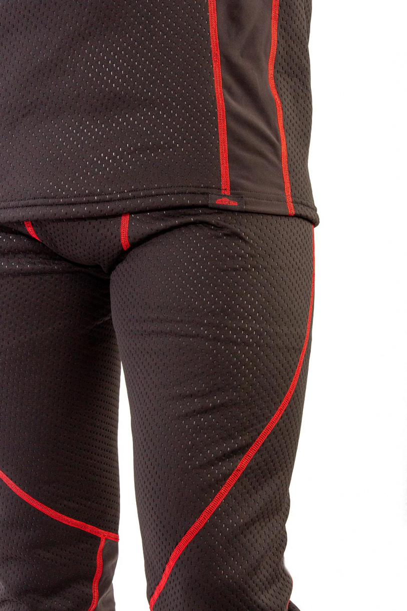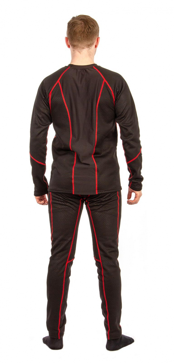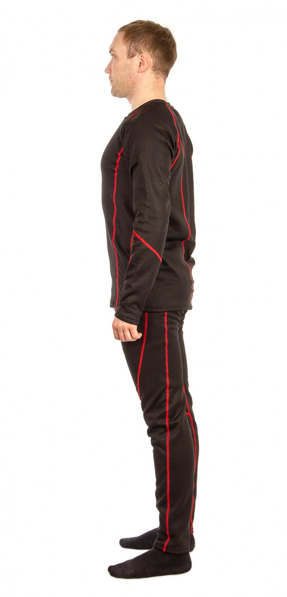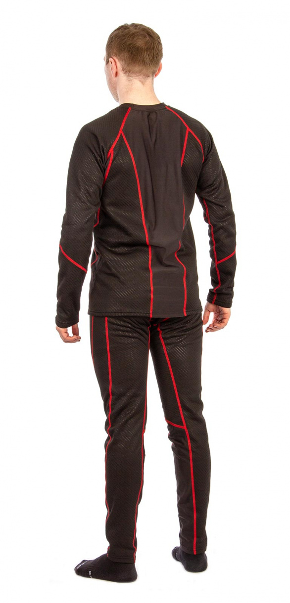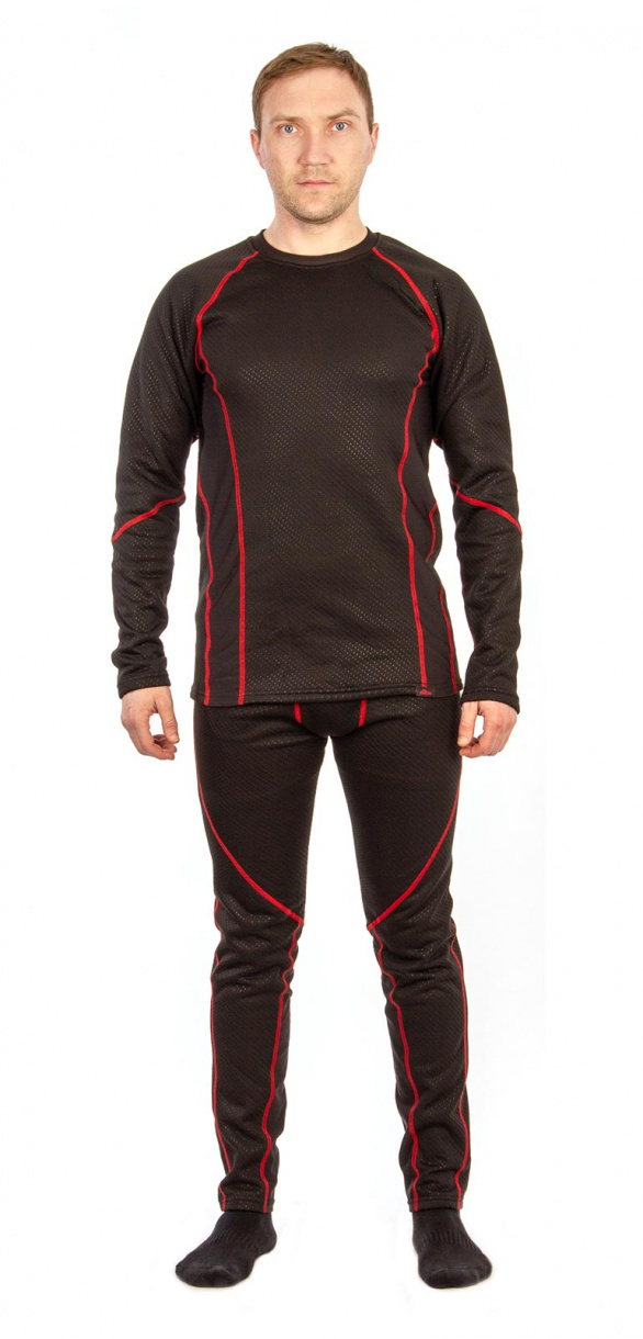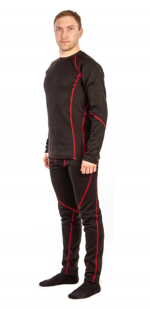 Термобелье «Полярник» (ТМ GRAYLING) скроено с учетом особенностей мужской фигуры. Состоит из фуфайки без воротника и кальсон. Для изготовления комплекта использовано качественное гигроскопичное трикотажное полотно с хорошим коэффициентом сохранения тепла. Материал двуслойный: верх - фактурный трикотаж, изнанка - флис контрастного красного цвета. Материал отлично тянется, плоские швы комфортны к телу.
