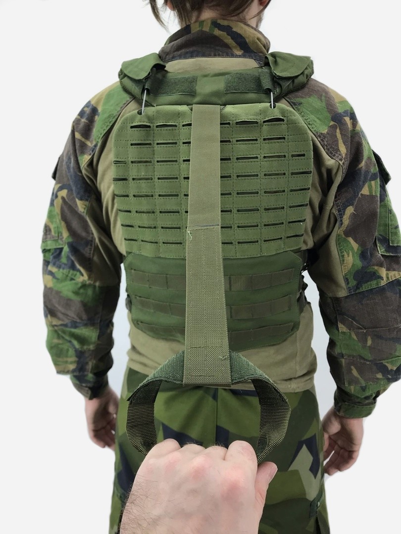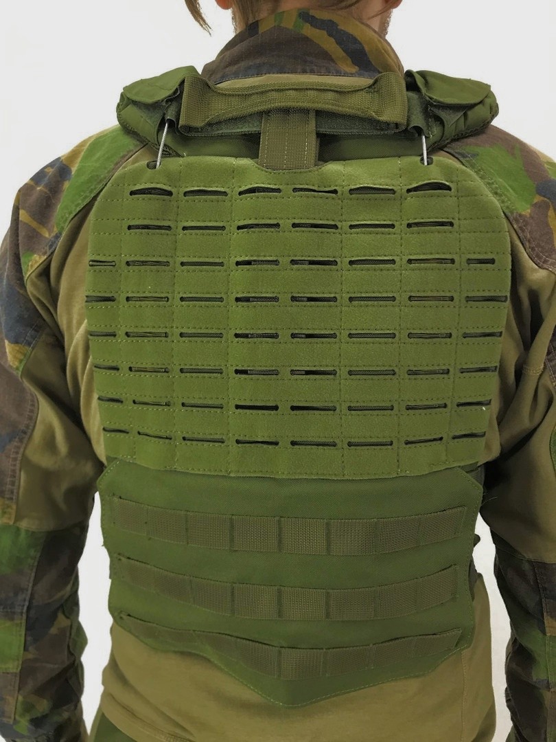 Стандартный плитоносец с быстросбросом (системой эвакуации) легко отстегивается и снимается одной рукой. Основным материалом, как правило, служит искусственная ткань маскировочного цвета. Плитоносец можно сочетать с разгрузочным поясом для размещения большого количества экипировки.