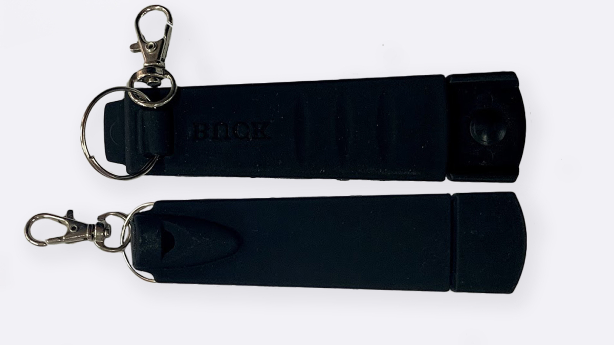 Свисток в ножнах — дополнительный элемент безопасности и сигнализации.