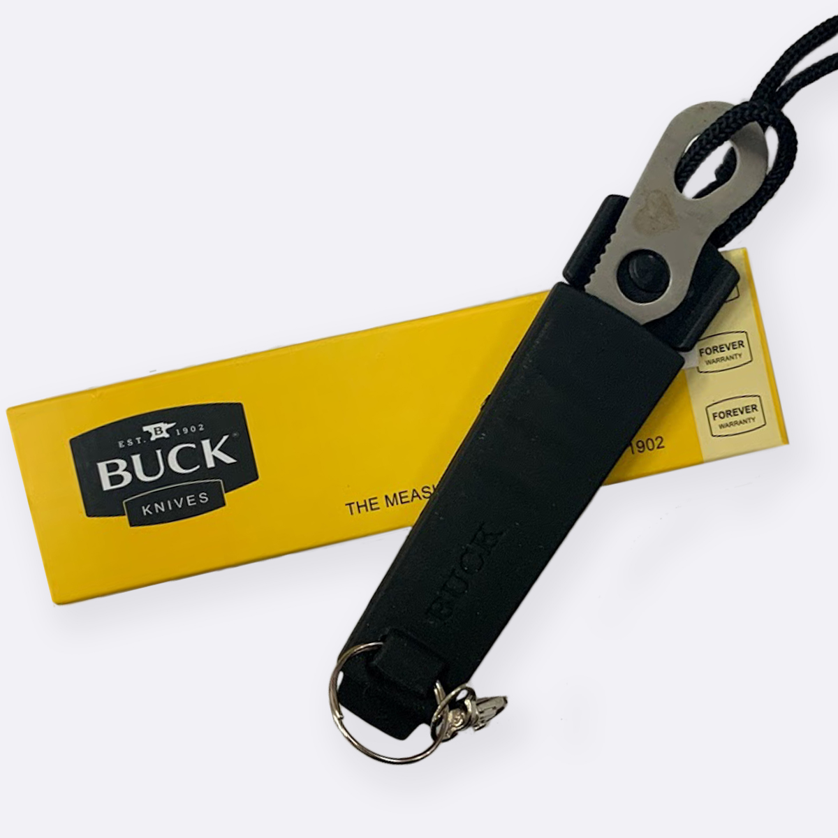 ✔️ Дополнительный функционал — ножны оснащены свистком для подачи сигнала и карабином для крепления.