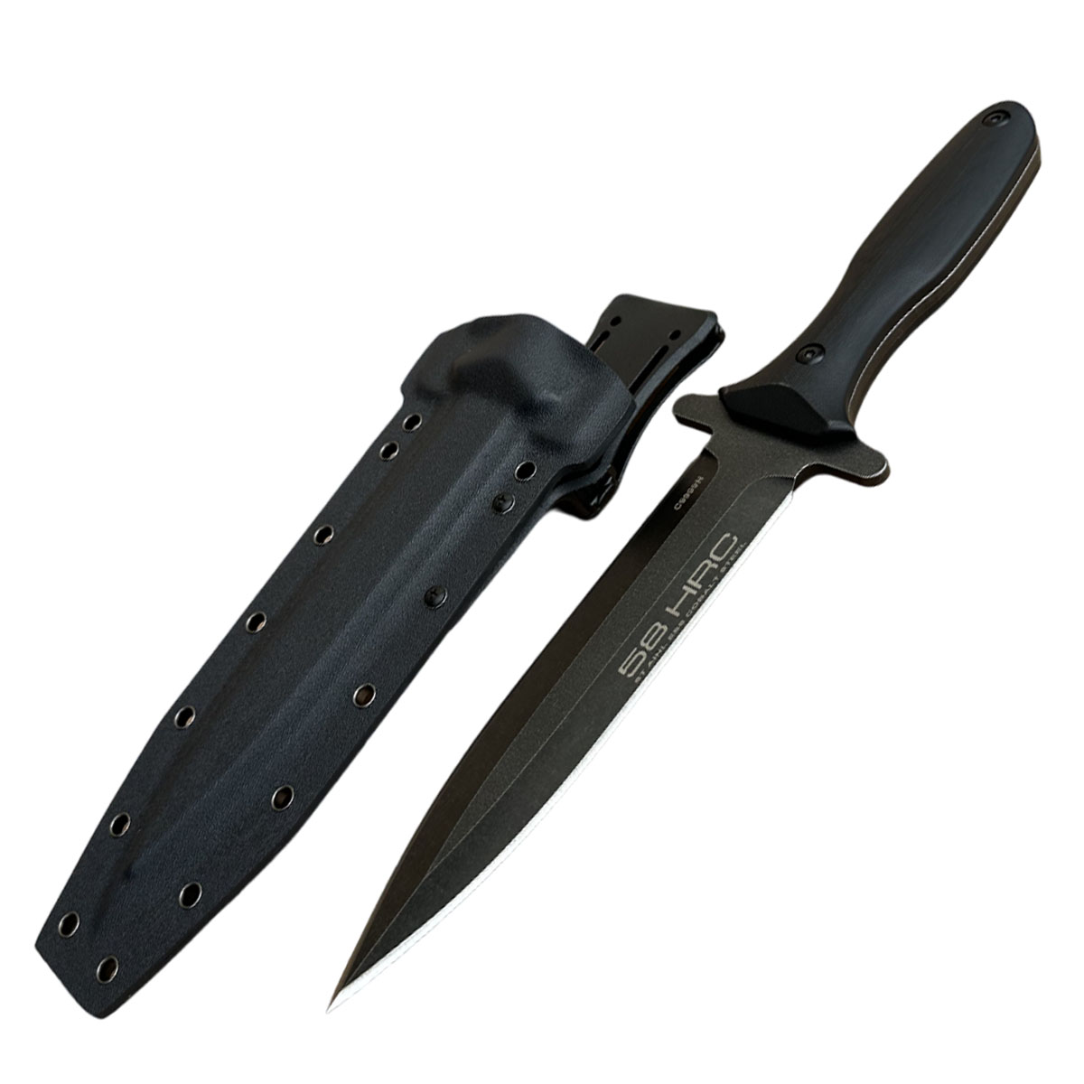 Extrema Ratio Suppressor Operativo — профессиональный тактический нож с фиксированным клинком, созданный для выполнения боевых, тактических и полевых задач. Разработан с учетом требований военных подразделений и силовых структур. Изготовлен из кобальтовой стали Böhler N690Co с твердостью 58 HRC, что обеспечивает длительное сохранение остроты, устойчивость к износу и высокую прочность. Симметричный клинок длиной 19 см выдерживает поперечные нагрузки до 150 кг, а массивная двухсторонняя гарда гарантирует безопасность руки даже при силовых ударах.