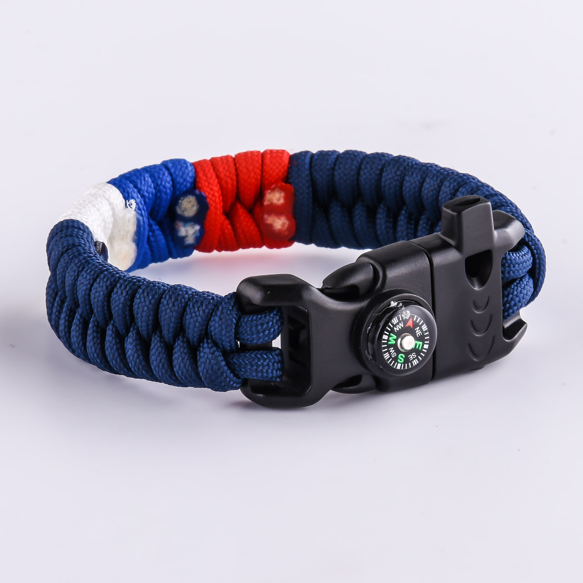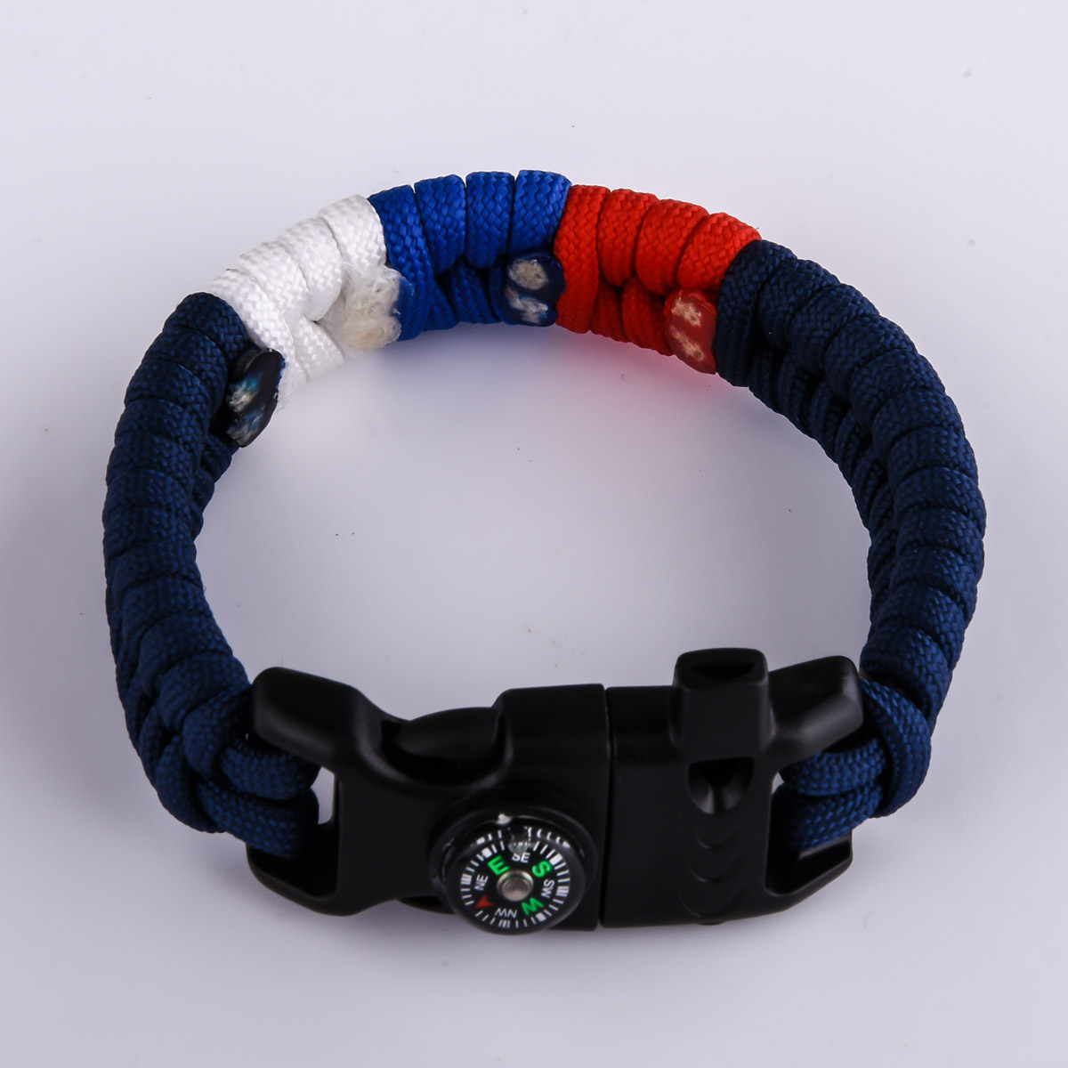 Тактический браслет из прочного нейлонового шнура, выполненный в плетении «рыбий хвост», — это не просто аксессуар, а компактный многофункциональный инструмент. В центре — вставка с российским триколором, подчеркивающая патриотичный стиль владельца. Застёжка-фастекс из ударопрочного пластика оснащена встроенным свистком для подачи сигнала, мини-компасом для ориентирования и огнивом для разжигания огня в полевых условиях. Идеален для военных, охотников, рыбаков, туристов, страйкболистов и любителей стиля милитари.