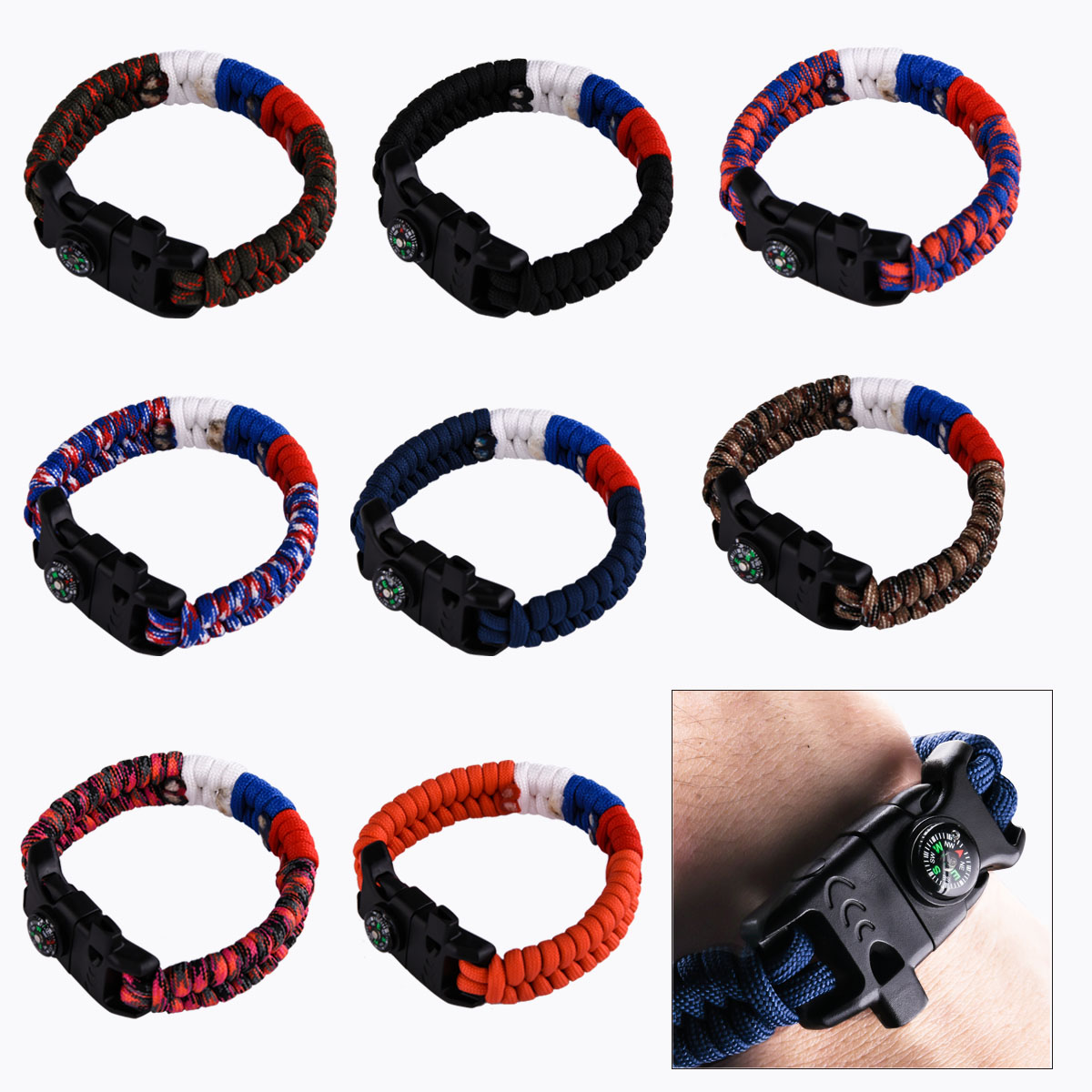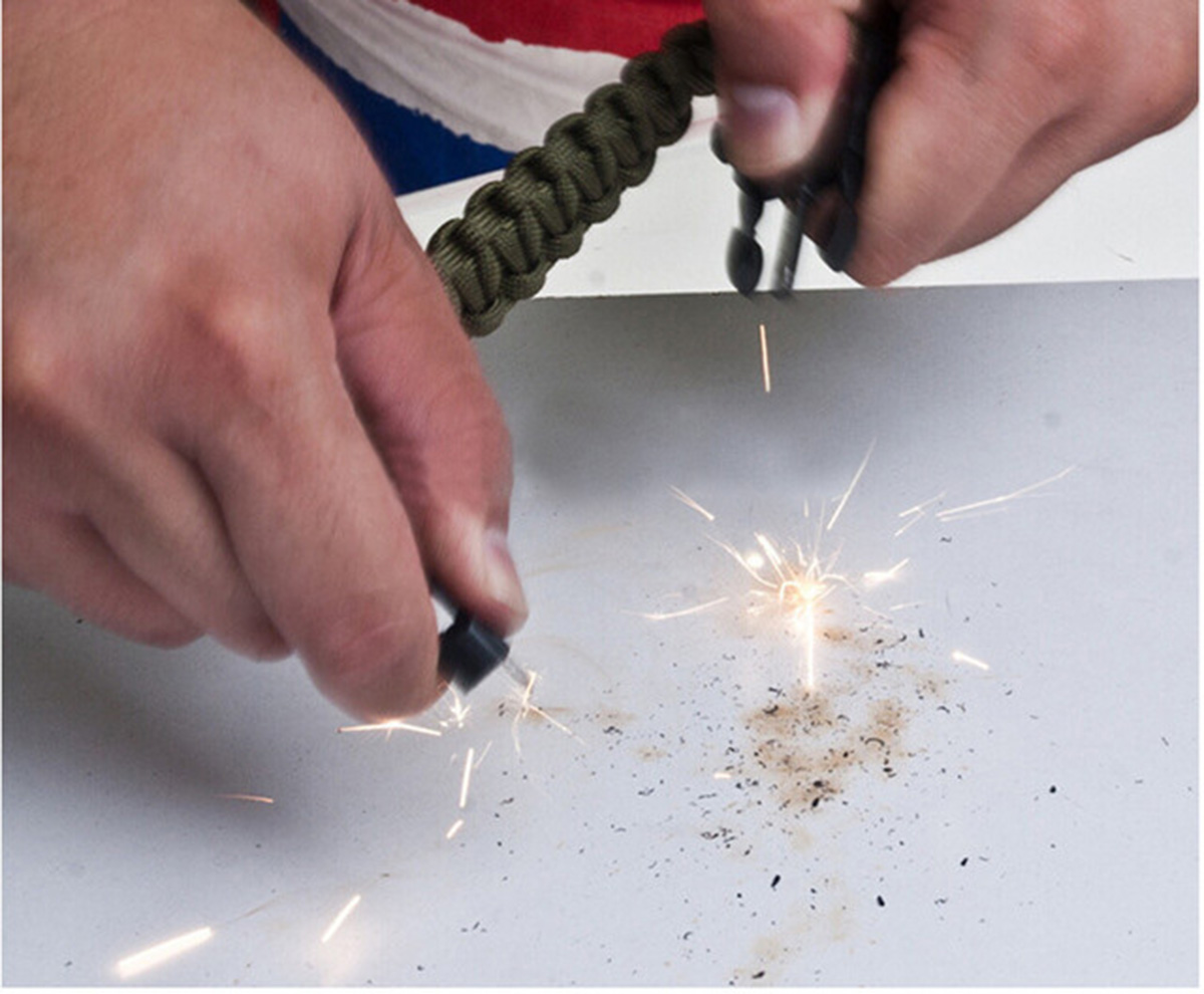 ✔️ Многофункциональная застёжка: свисток (громкость до 100 дБ), мини-компас и огниво.