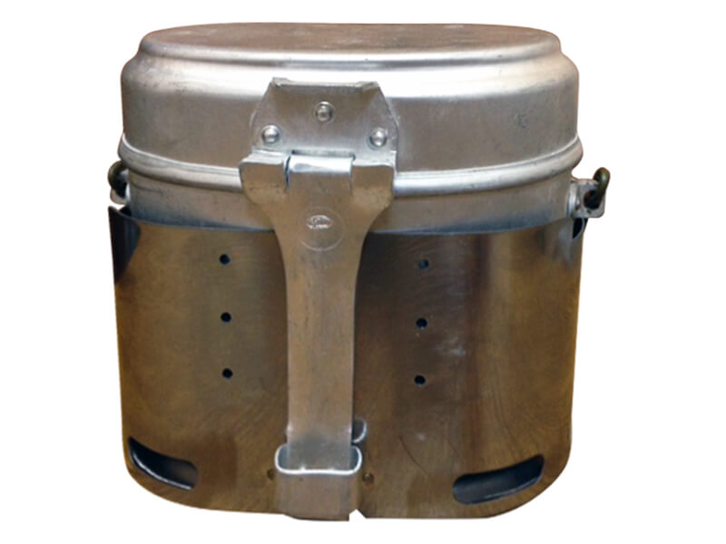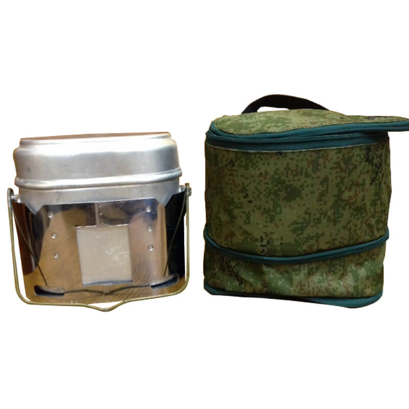 - Ограничители и отверстия в печке на разном уровне позволят приготовить пищу как в армейском котелке, так и в его крышке