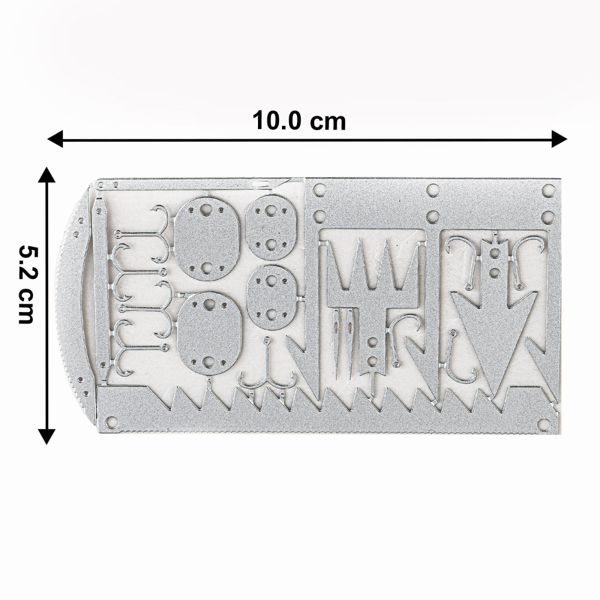 Многофункциональная кредитка выживальщика 25-в-1 (металлик) — это компактный и легкий аварийный набор инструментов, способный уместиться в любом кармане, кошельке или подсумке. Всего 12 граммов веса и 100×52 мм размера, но при этом 25 функциональных элементов для выживания, охоты, рыбалки, ремонта и оказания первой помощи.