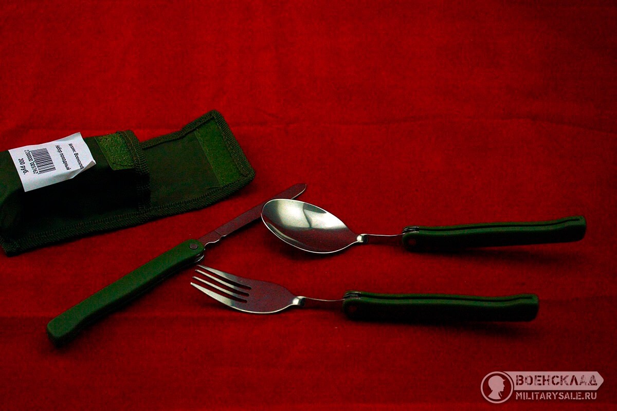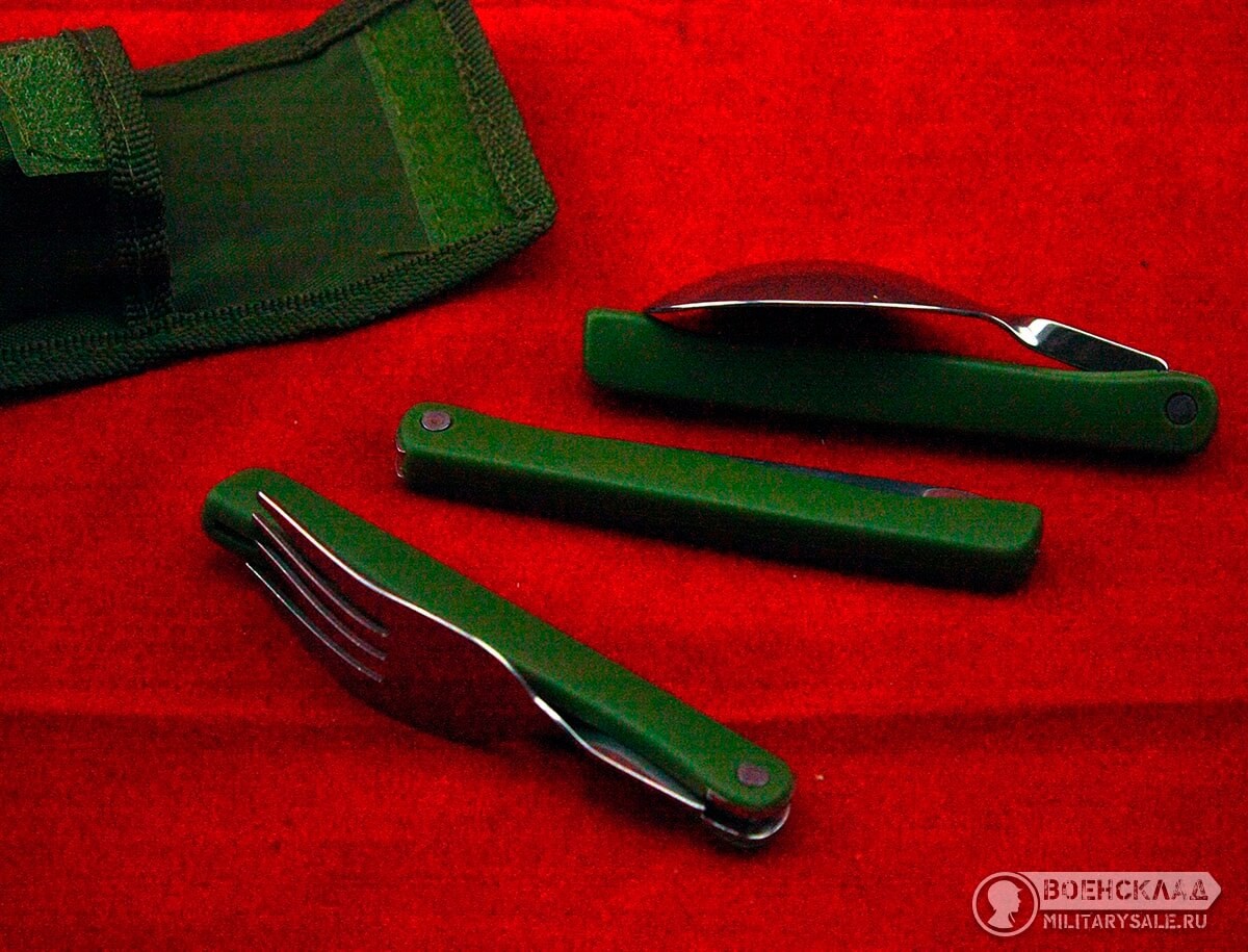 Классический набор столовых приборов - компактные, прочные. Упакованы в небольшой тканевый чехол - можно носить в кармане, есть крепление для ношения на поясе. Нержавеющая сталь и надёжный механизм сложения прослужат долго.