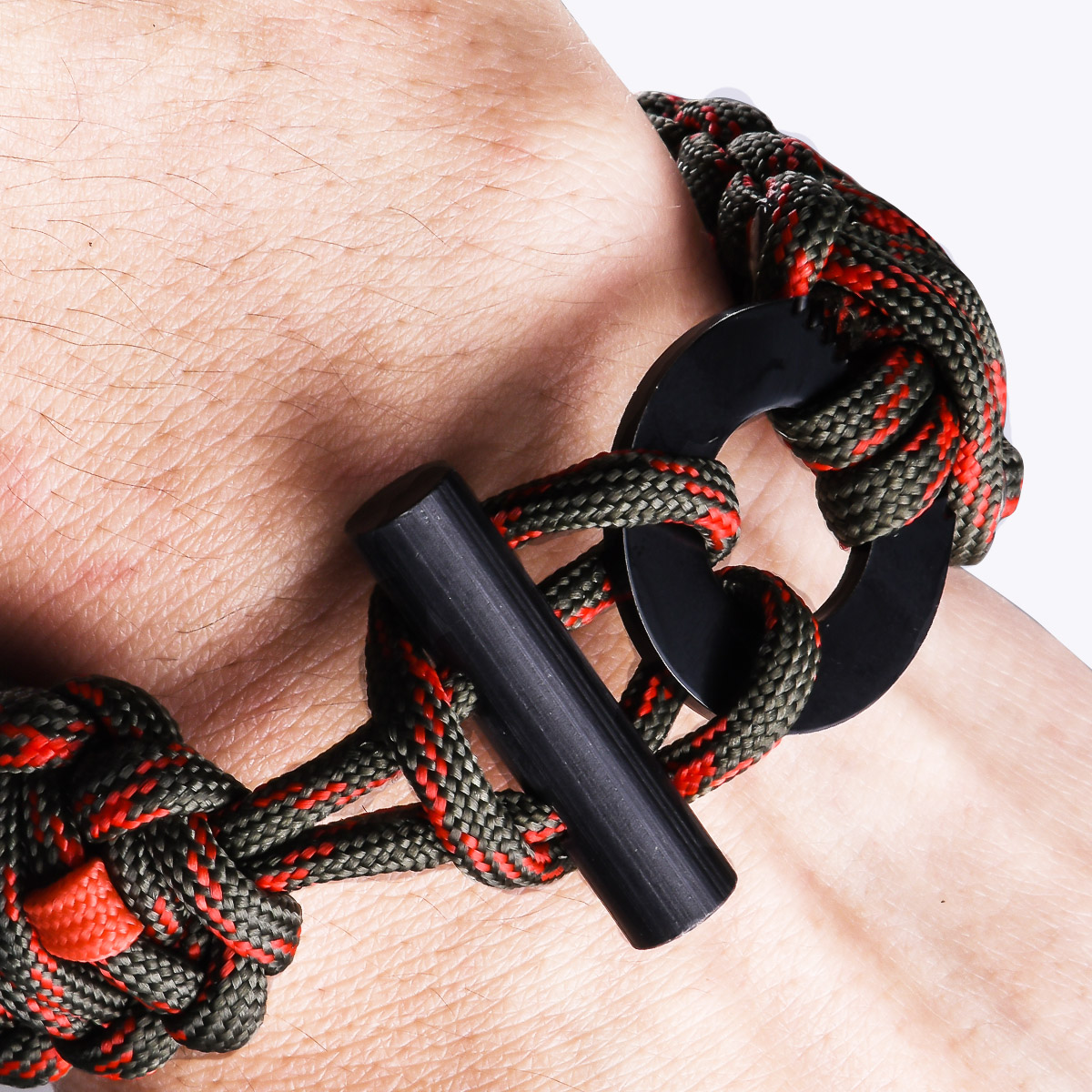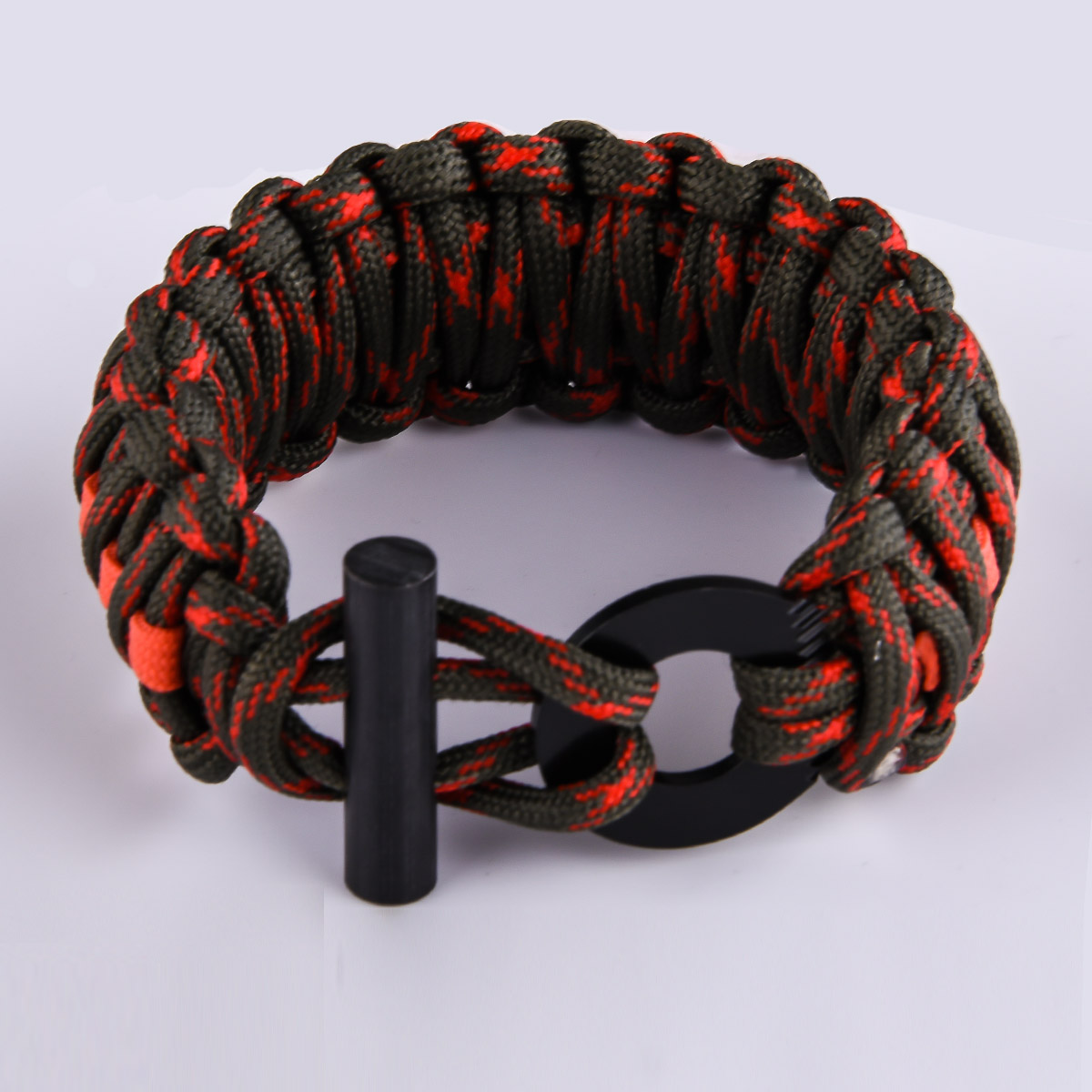 Тактический браслет из прочного нейлонового шнура в плетении «Королевская кобра» — это сочетание брутального дизайна и функциональности. Камуфляж в красных тонах с яркой оранжевой линией в центре выделяет владельца и подчёркивает индивидуальность. Оснащён чёрным скребком, который можно использовать для огнива или как вспомогательный инструмент в походных условиях. Такой браслет станет как стильным аксессуаром в милитари-образе, так и полезным элементом снаряжения для охоты, рыбалки, страйкбола и туризма.