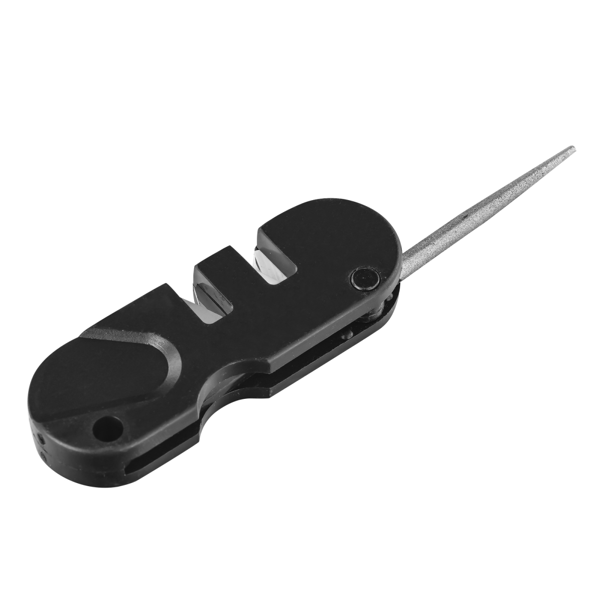 Карманная двухступенчатая точилка — это компактный и эффективный инструмент для заточки ножей и мелких режущих предметов в любых условиях. Благодаря двухступенчатой системе (карбидовые пластины + керамические абразивы) она позволяет сначала быстро восстановить угол заточки, а затем довести клинок до идеальной остроты. Дополнительно оснащена алмазным стержнем для обслуживания серрейторных лезвий и крючков. Легкая (всего 38 г) и прочная, эта точилка легко помещается в карман, рюкзак или крепится на темляк, оставаясь всегда под рукой.