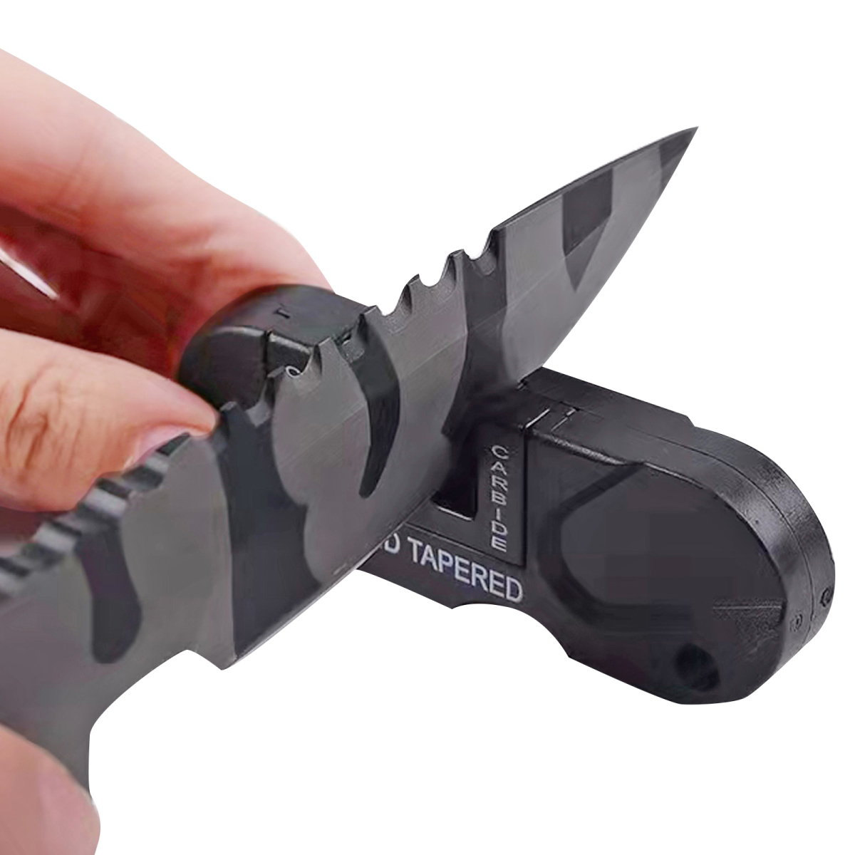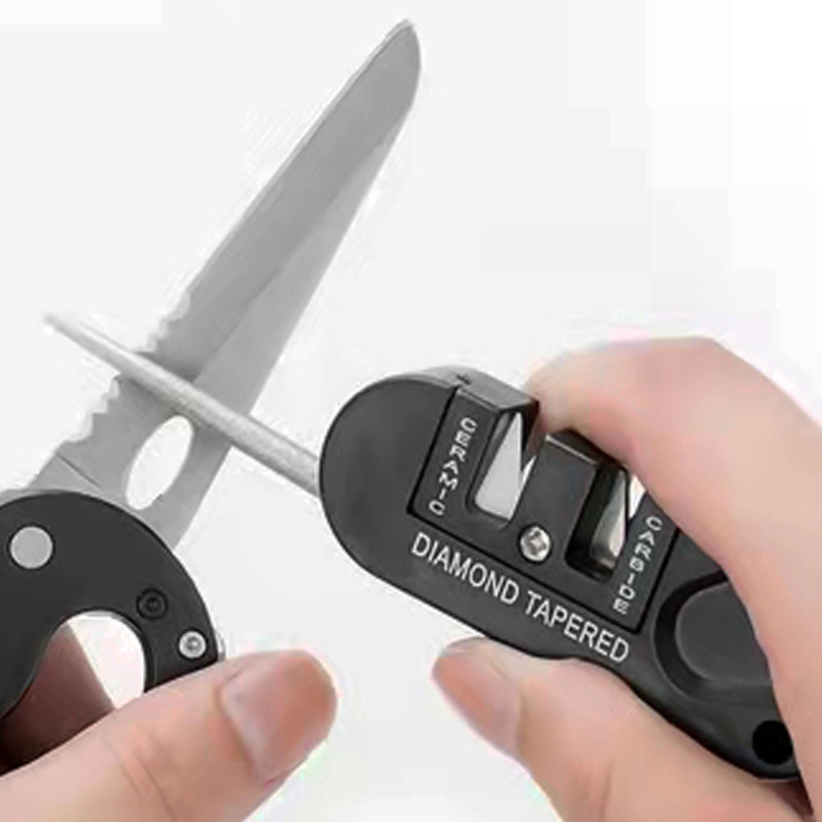 ✔️ Двухступенчатая система — карбидовые абразивы (грубая заточка) и керамические камни (тонкая доводка) обеспечивают полный цикл восстановления клинка.