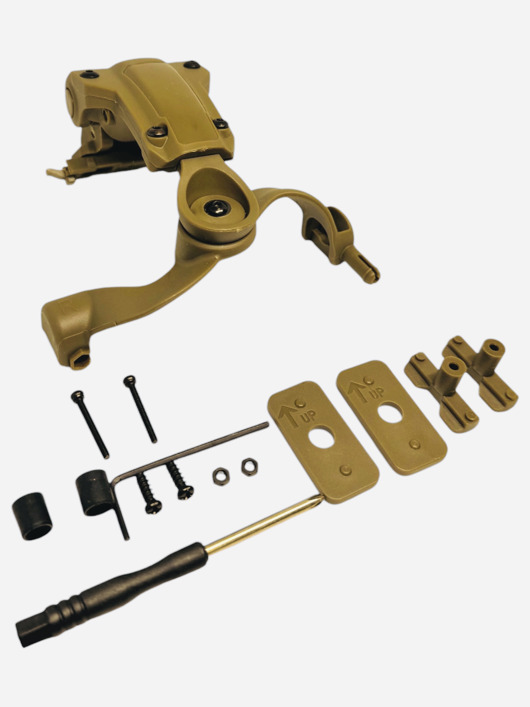 ✔️ Совместимость с современными рейками и шлемами: подходит для ARC Rail, M-LOK, рейки системы Team Wendy и др.; легко монтируется на шлемы FAST, TOR-D, ARCH — без переделок, минимальные усилия при установке.