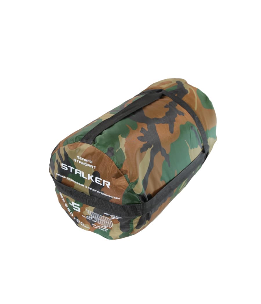Спальник Stalker Standart "woodland" – надежный выбор для активных людей, предпочитающих тактический стиль и комфорт!
