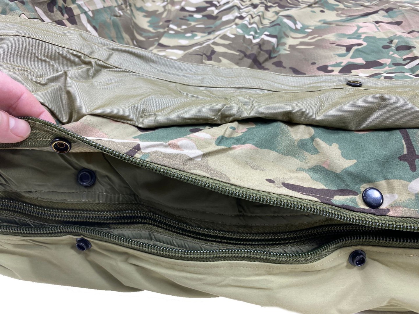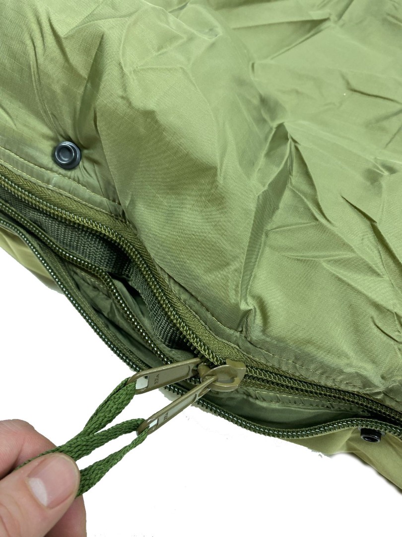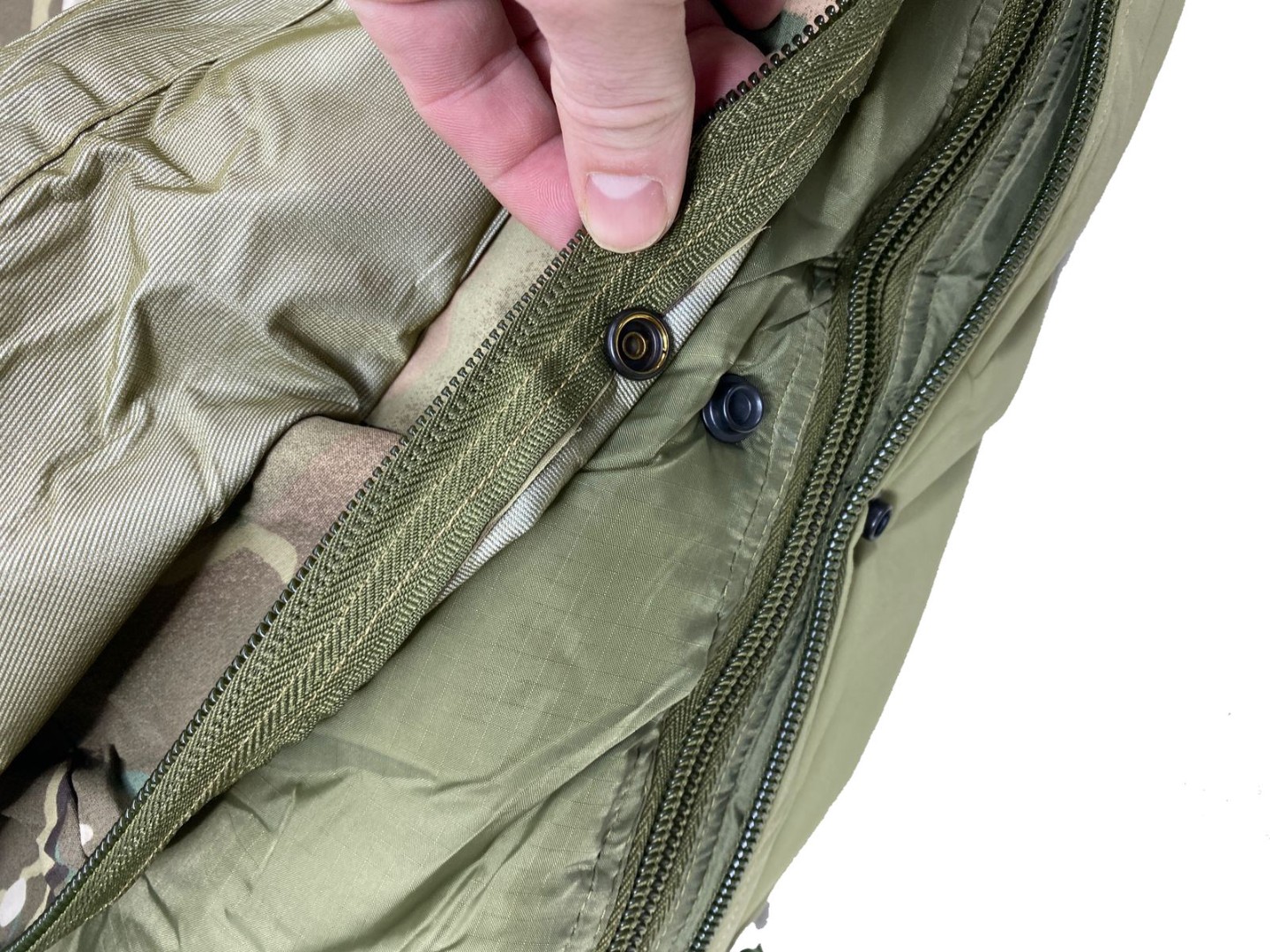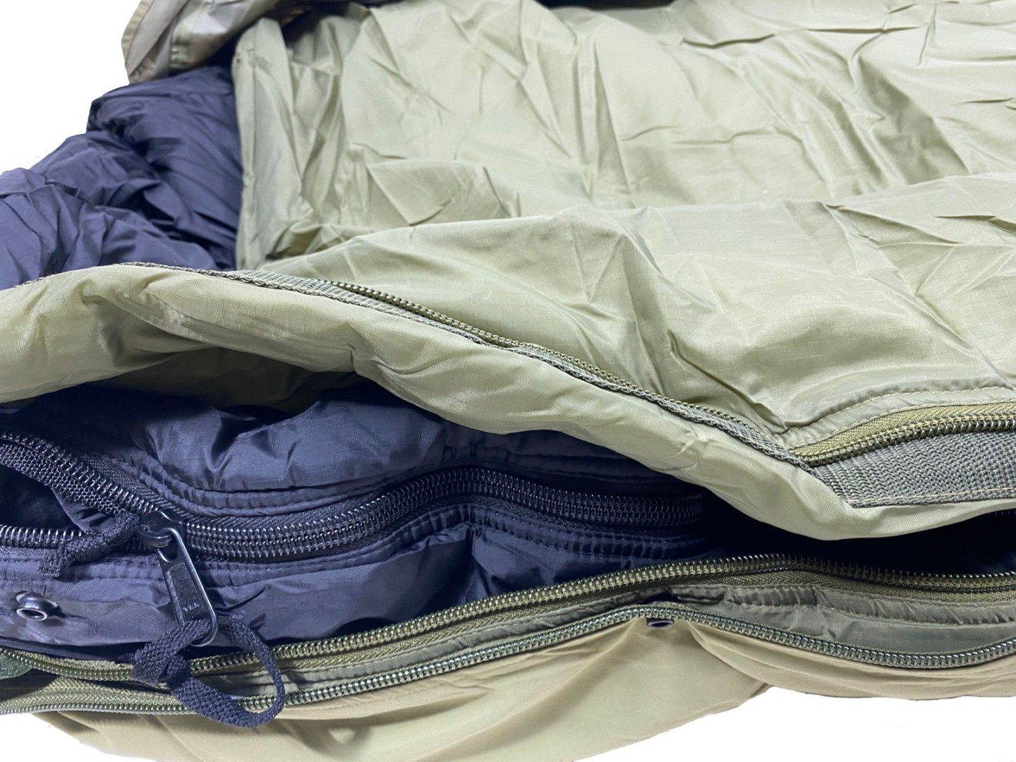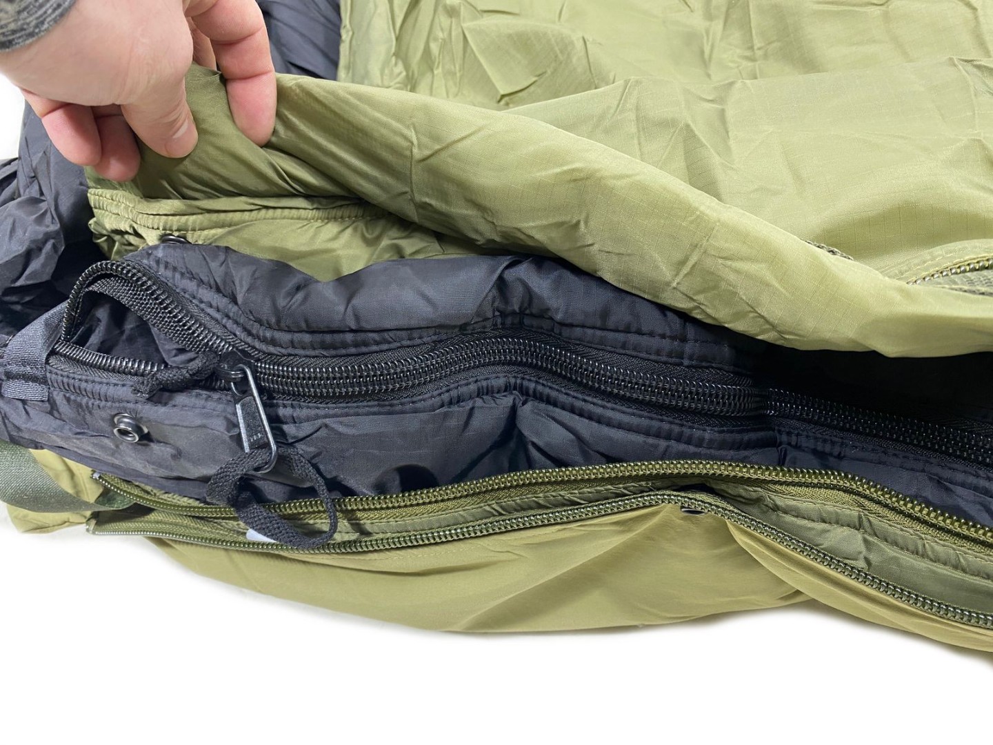 Два внутренних мешка в виде кокона в чёрном и зелёном цвете выполнены из синтетической ткани Rip-stop. Наличие двухсторонней молнии облегчает использование спальных мешков. На капюшоне расположена утяжка от сильного ветра. Спальные мешки по бокам снабжены кнопками для скрепления друг с другом и мембранным чехлом.