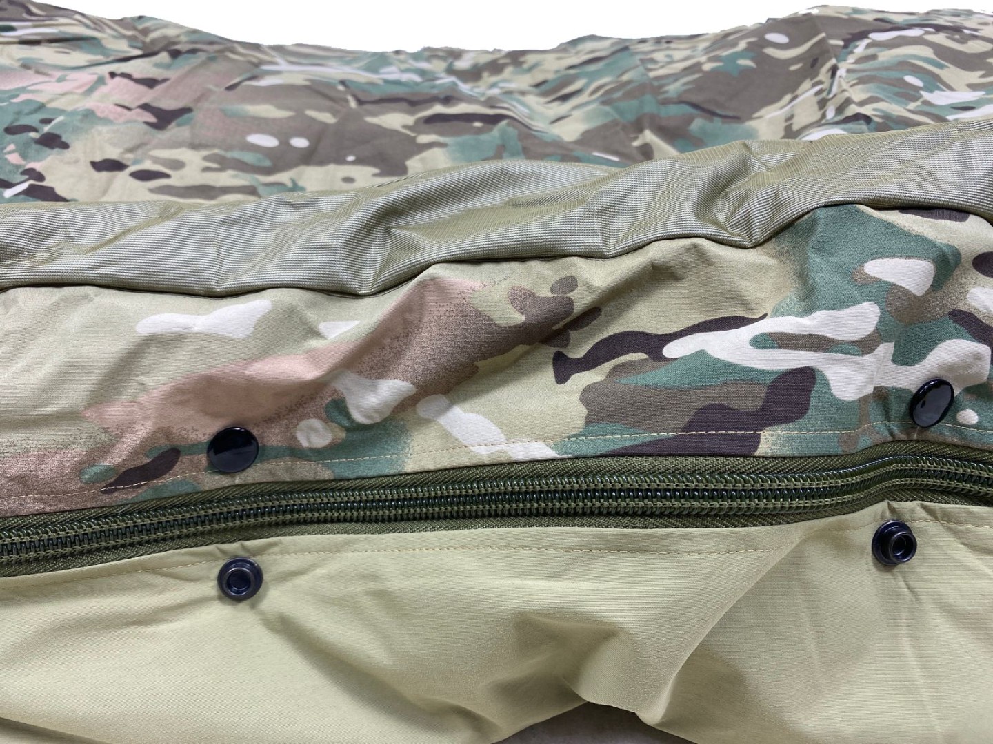 Спальный мешок, состоящий из трёх слоев. Первый слой — мембранный чехол, который рассчитан на поддержание сухой среды внутри спальной системы. Чехол за счёт мембранного слоя обладает дышащими свойствами и не пропускает влагу с внешней стороны, скрепляется при помощи двухсторонней молнии и кнопок.