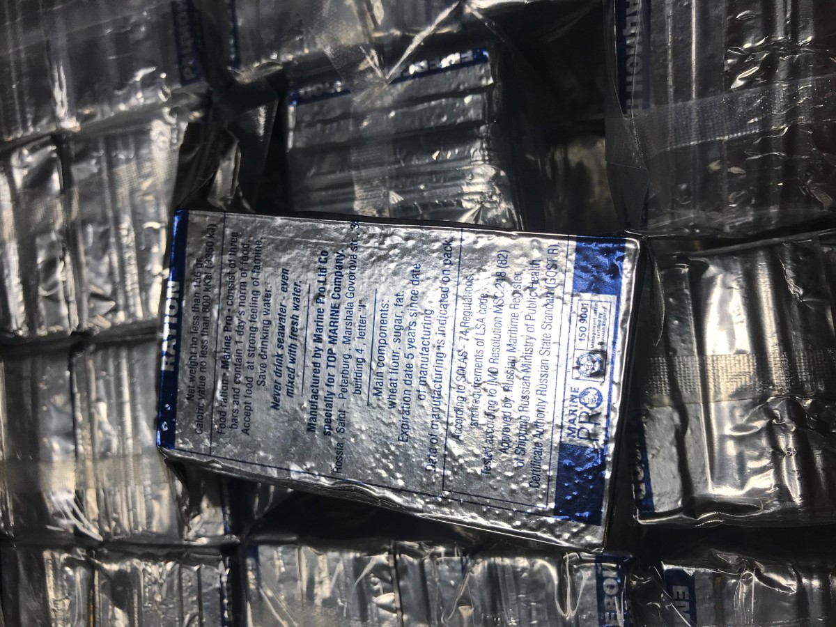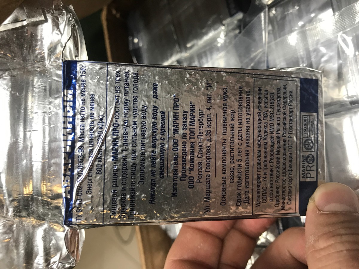 Относительно высокое содержание углеводов и жиров позволяет обеспечить энергетические затраты в условиях возможного переохлаждения организма человека при нахождении его на спасательном средстве.