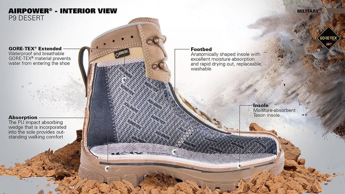 Тактические немецкие ботинки, рассчитанные на эксплуатацию в условиях жаркого климата. Отличаются малым весом, высокой прочностью, износостойкостью. Они не пропускают воду и защищают ноги от механических повреждений.