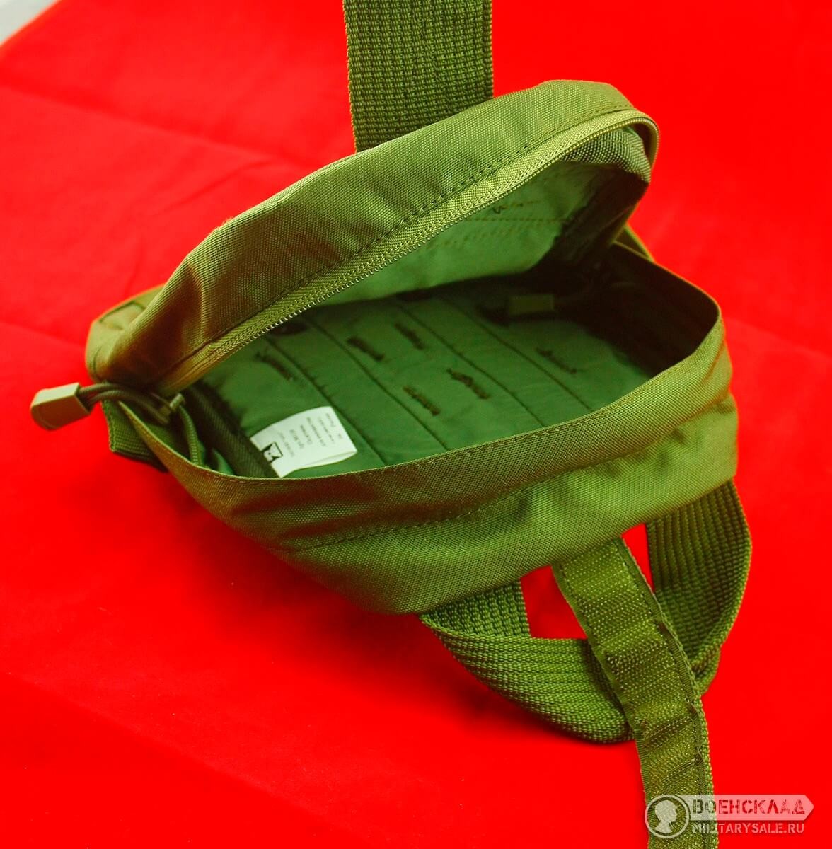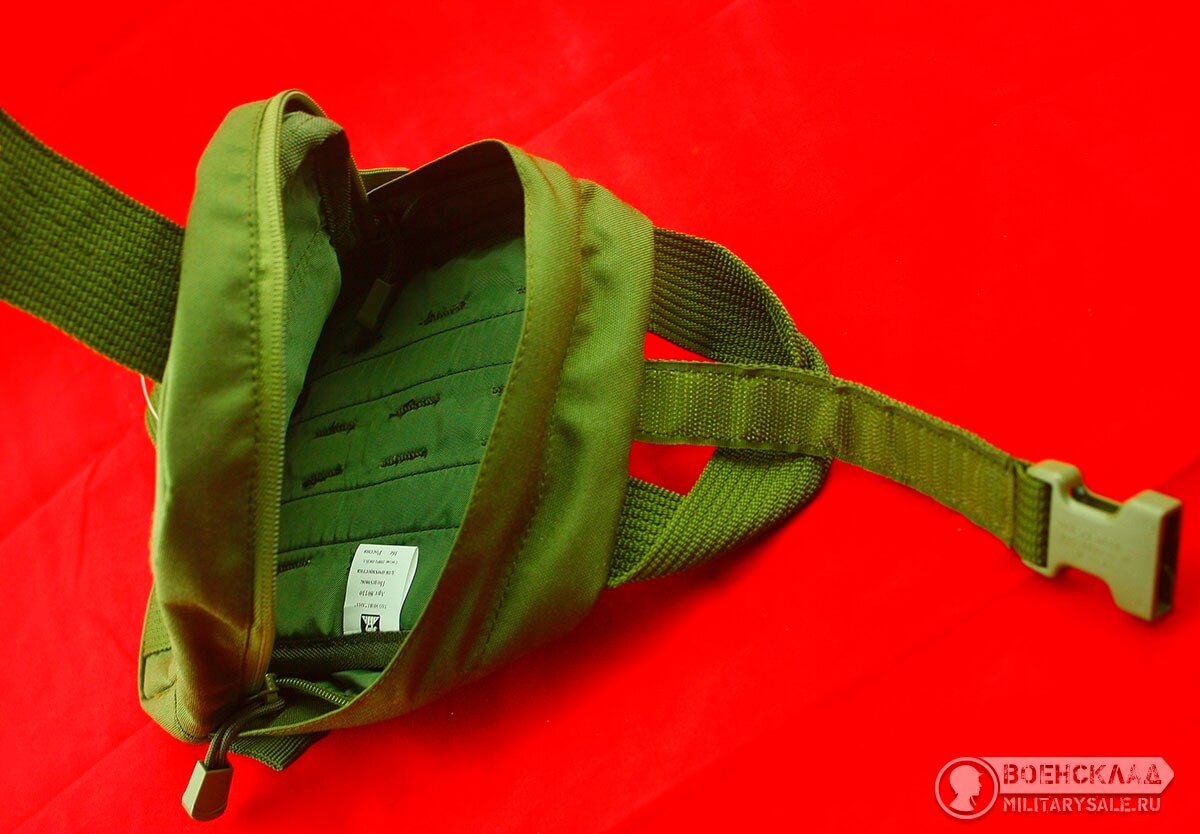 Материал плотный прорезиненный, за счет покрытия поливинилхлорида — водонепроницаем, устойчив к действию кислот, щелочей, бензина, керосина и растворителей. Система крепления MOLLE, на липучках, замок — фастекс.