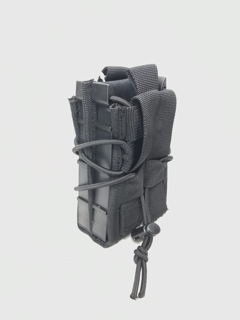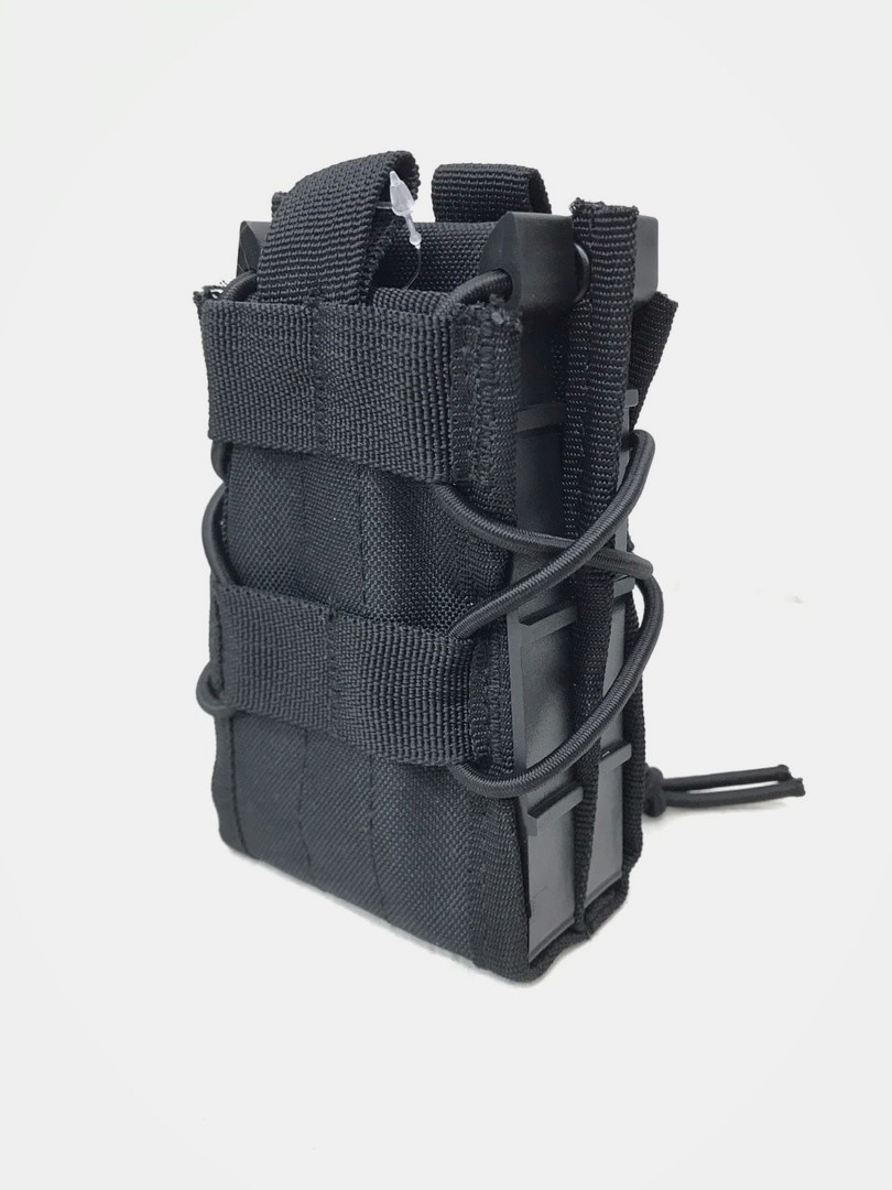 Подсумок под магазины АК c системой Molle,рассчитан на два магазина,по бокам встроены пластиковые рёбра жёсткости,подсумок утягивается с помощью резинок на клапане.