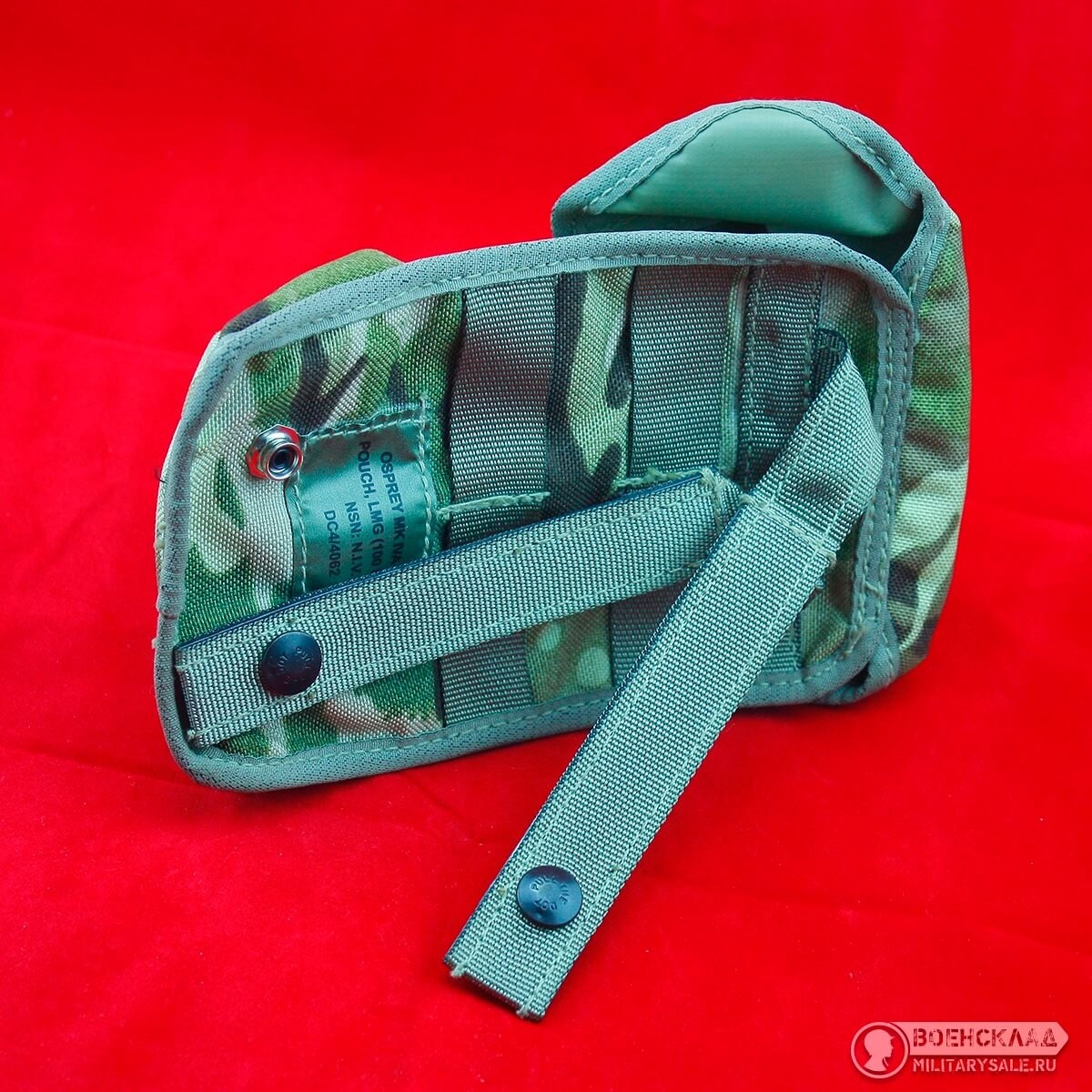 Крепится на тактическое снаряжение по системе MOLLE, на липучках, замок — фастекс.