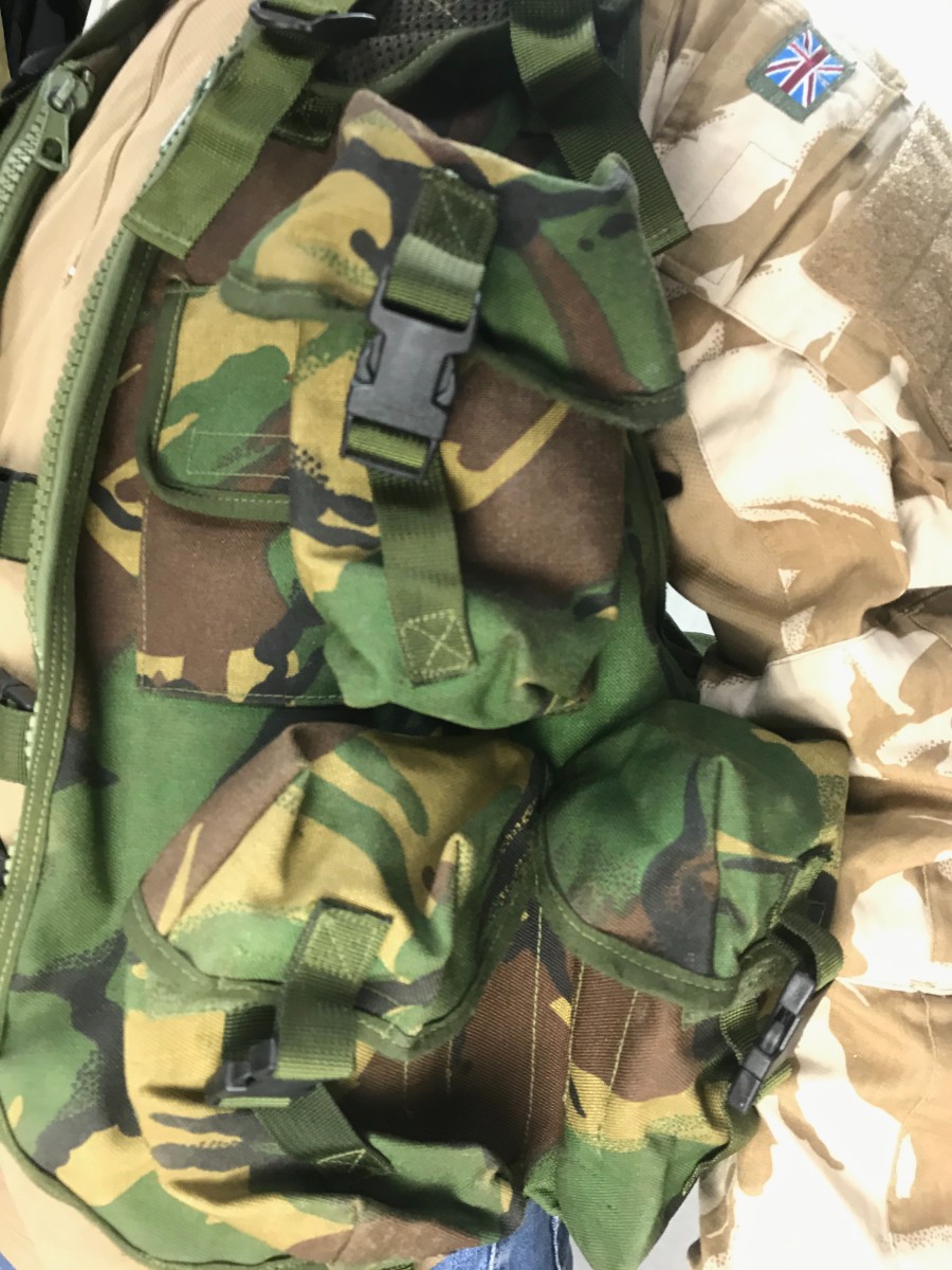 В нижней части расположены 6 подсумков одинакового размера, в верхней части расположены два подсумка, в комплекте идет ремень.