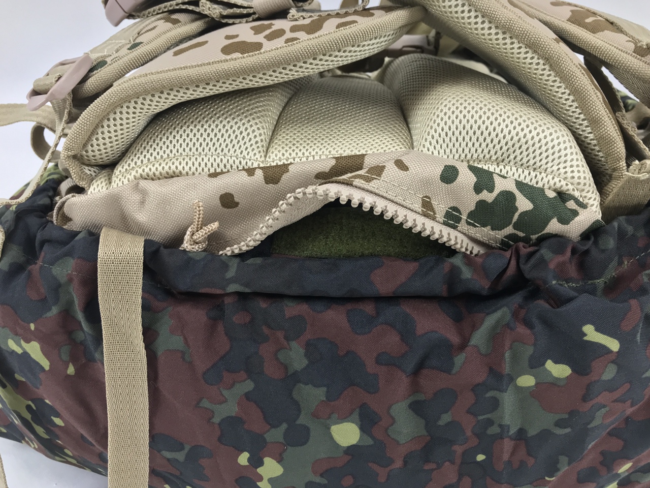Рюкзак в расцветке tropentarn c двумя съёмными, боковыми карманами которые при необходимости могут утягиваться, в нижней части рюкзака распложен карман, в котором находятся два вшитых, непромокаемых чехла(в цвете олива и камуфляже FLECTARN)