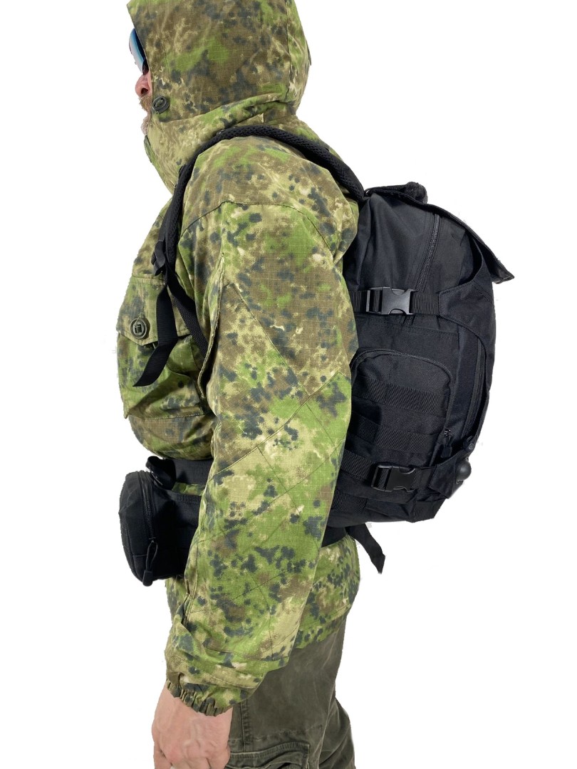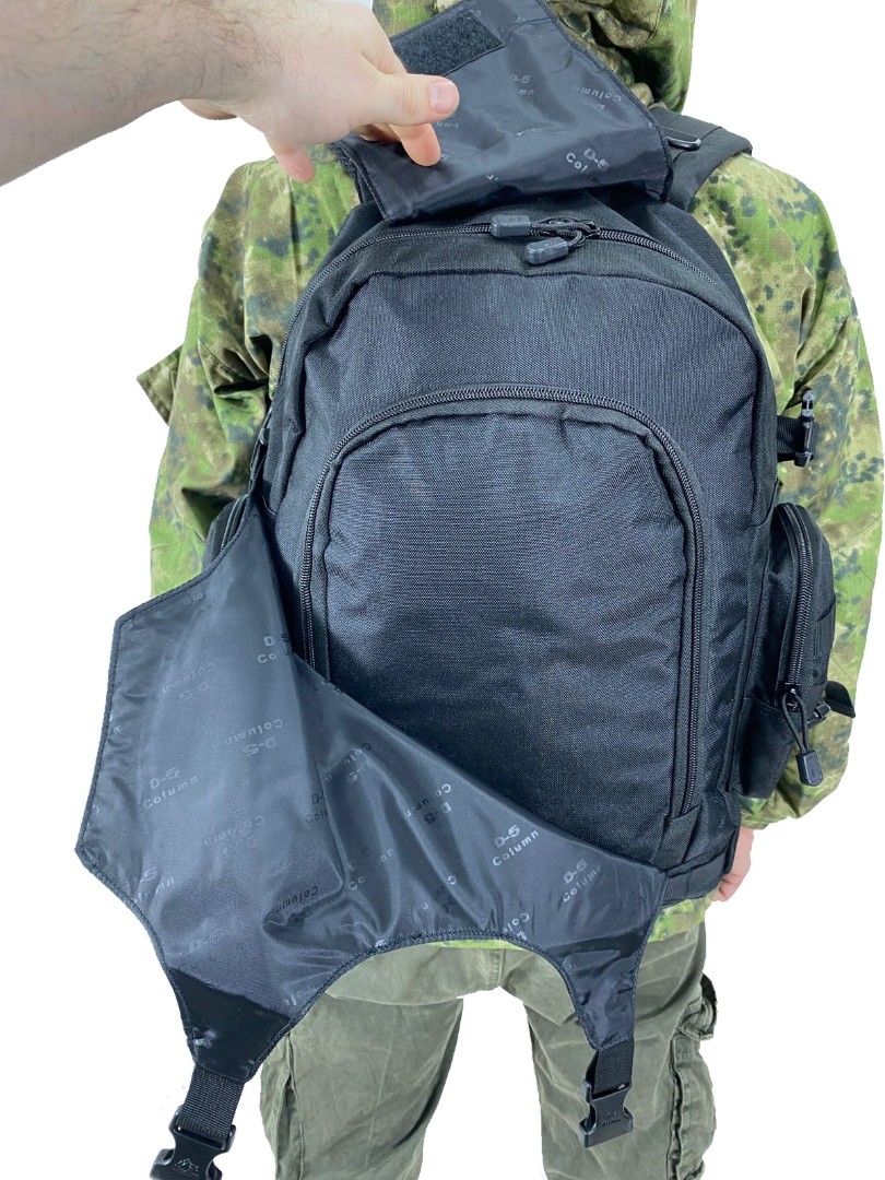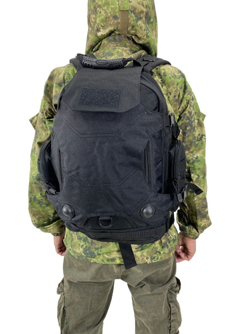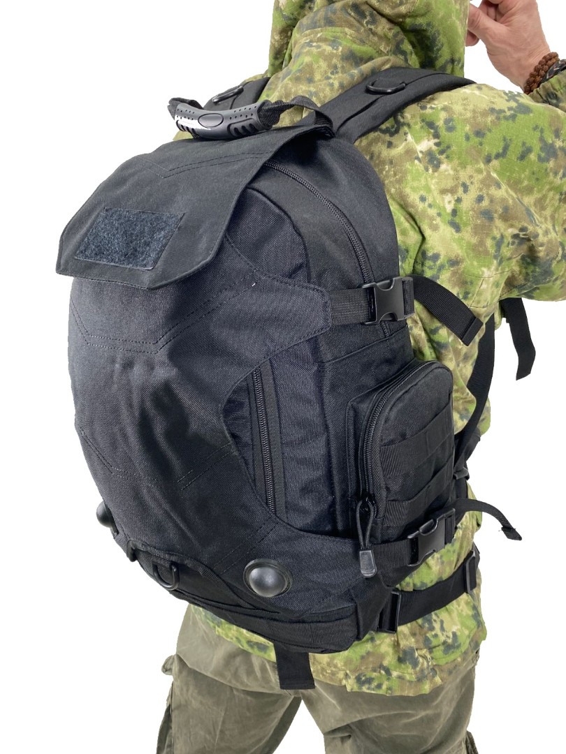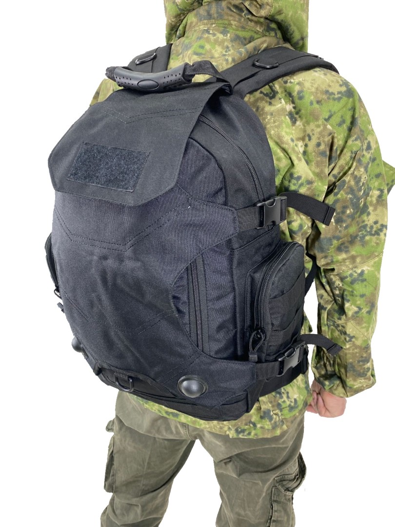 Тактический городской рюкзак с подсумком в комплекте выполнен из крепкой синтетической ткани. Отличительная особенность модели рюкзака — это наличие ткани на спине, под которую поместить, например, каску или коптер. Общий объём рюкзака 36 литров, что позволяет разместить самые необходимые вещи.