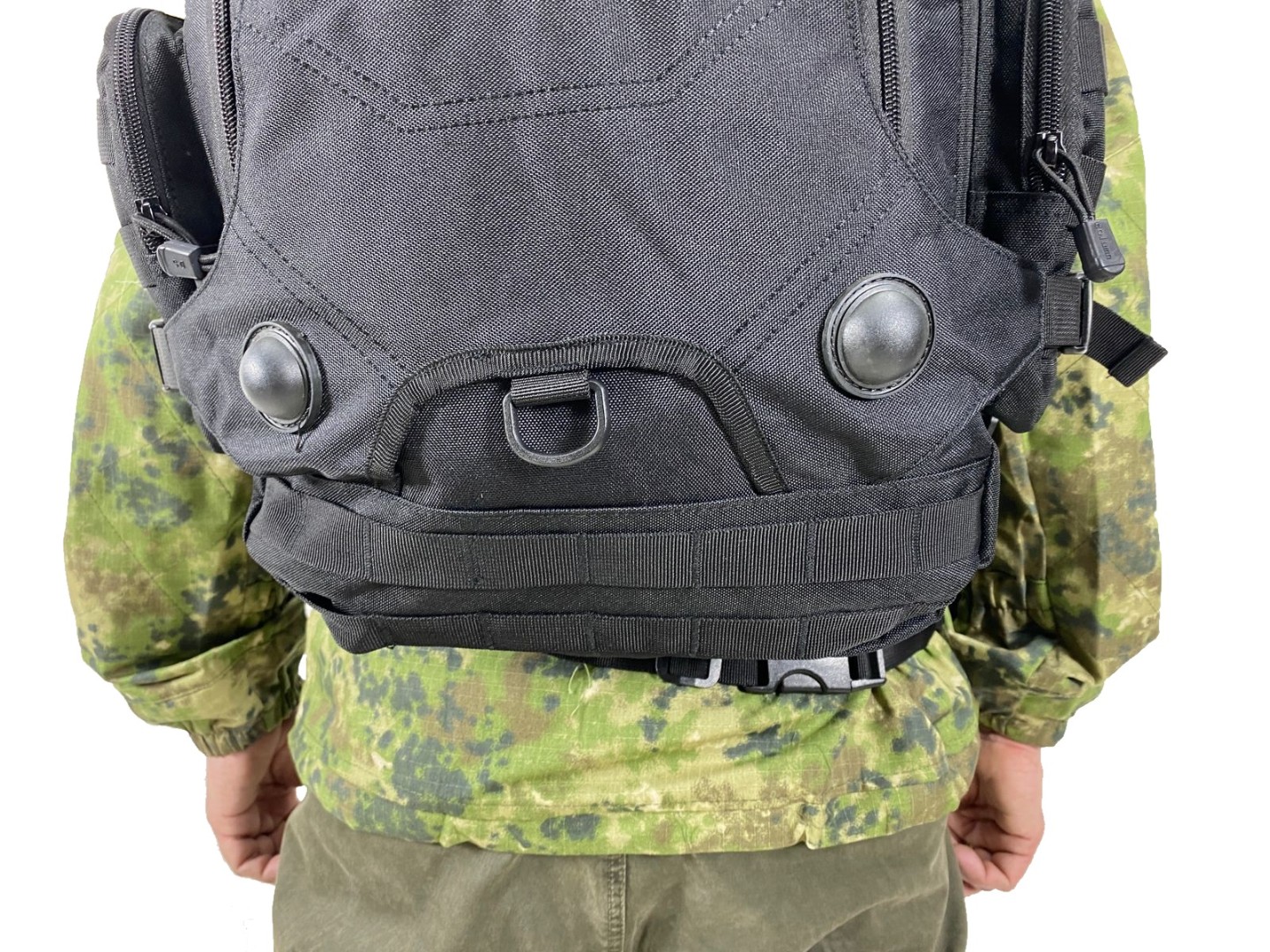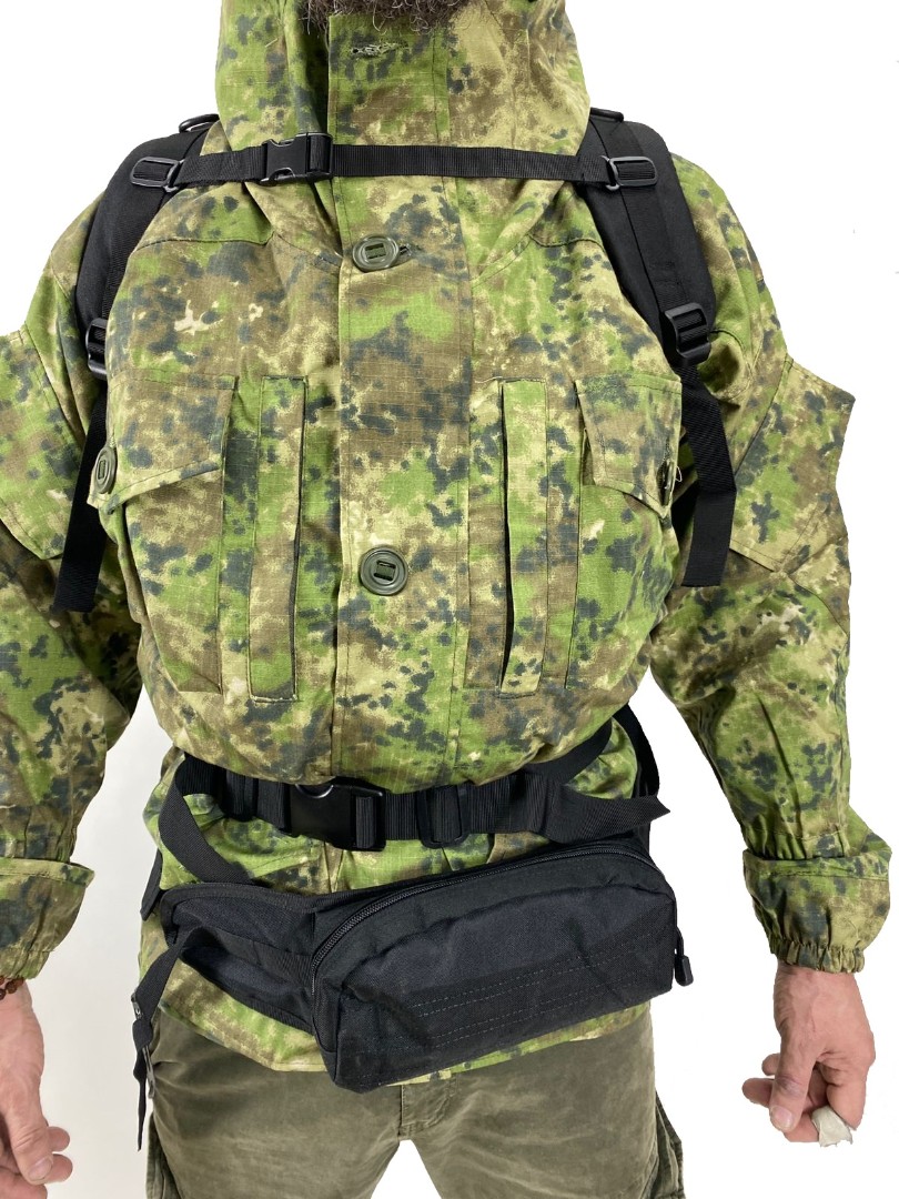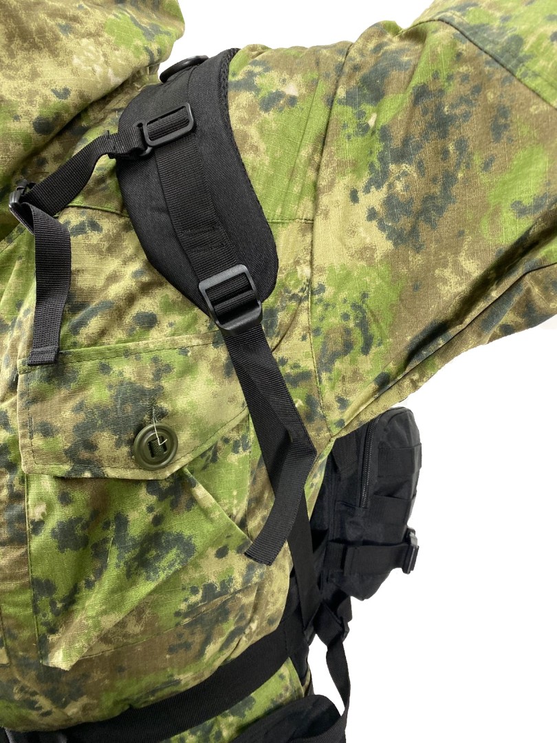 К рюкзаку на поясе прикреплен подсумок на молнии, подсумок закреплён при помощи дополнительного пояса и при необходимости может быть переставлен на заднюю часть рюкзака. По бокам рюкзака расположены небольшие карманы на молнии. На стропах расположены D-образные кольца для крепления мелочей или аксессуаров. Полужёсткая спина рюкзака оснащена вентилируемой подкладкой с мягкими  подушечками. Основное отделение внутри оснащено большим карманом,одно небольшое отделение на молнии позади основного отдела. Грудной и поясной ремень позволяет плотно фиксировать рюкзак к телу и облегчает нагрузку на спину.Стропы системы  Molle  для крепления подсумков ,расположены на боковой и задней части рюкзака.