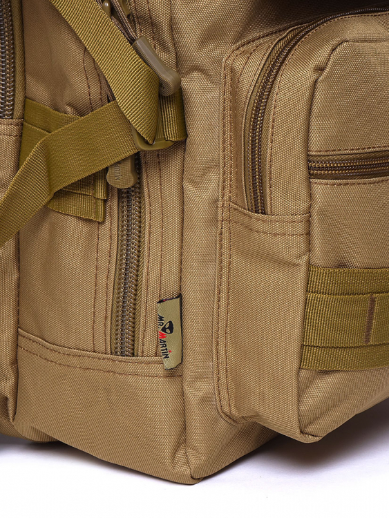 Спинка рюкзака полужесткая, с хорошей вентиляцией и рельефными подушками, обеспечивающими отвод тепла. Материал изготовления — прочный армейский Oxford 600D с водоотталкивающей пропиткой и PU-покрытием. Фурнитура Mr. Martin включает надежные молнии с металлическими бегунками, прочные пластиковые фастексы и полукольца.