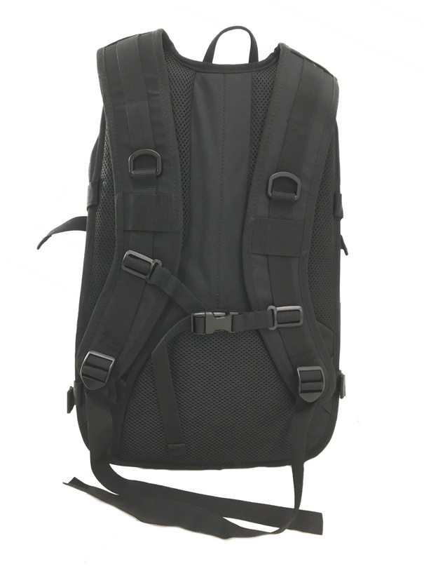 Рюкзак объёмом 25 литров с системой MOLLE сзади и по бокам.Два основных больших отделения рюкзака находится под защитной клипсой.Сетчатая подкладка на спине позволяет спине отводить влагу,уплотнённый слой позволяет уменьшать нагрузку на позвоночник.