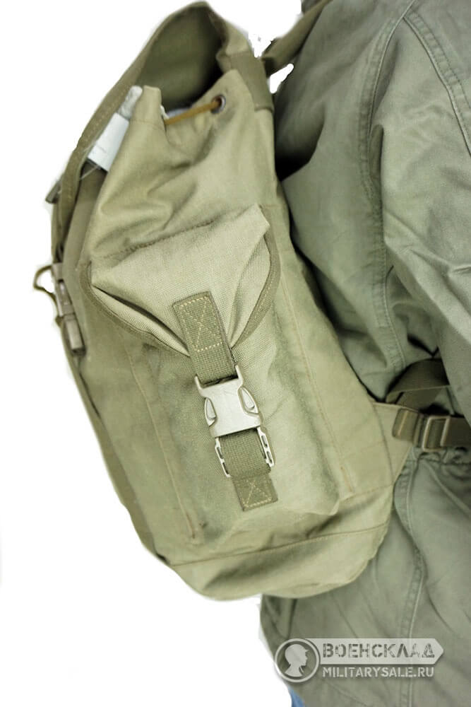 Два внешних кармана, фиксируются застежками фастексами. Боковые карманы пришиты только по краям, благодоря этому можно крепить снаряжение например - топор.
