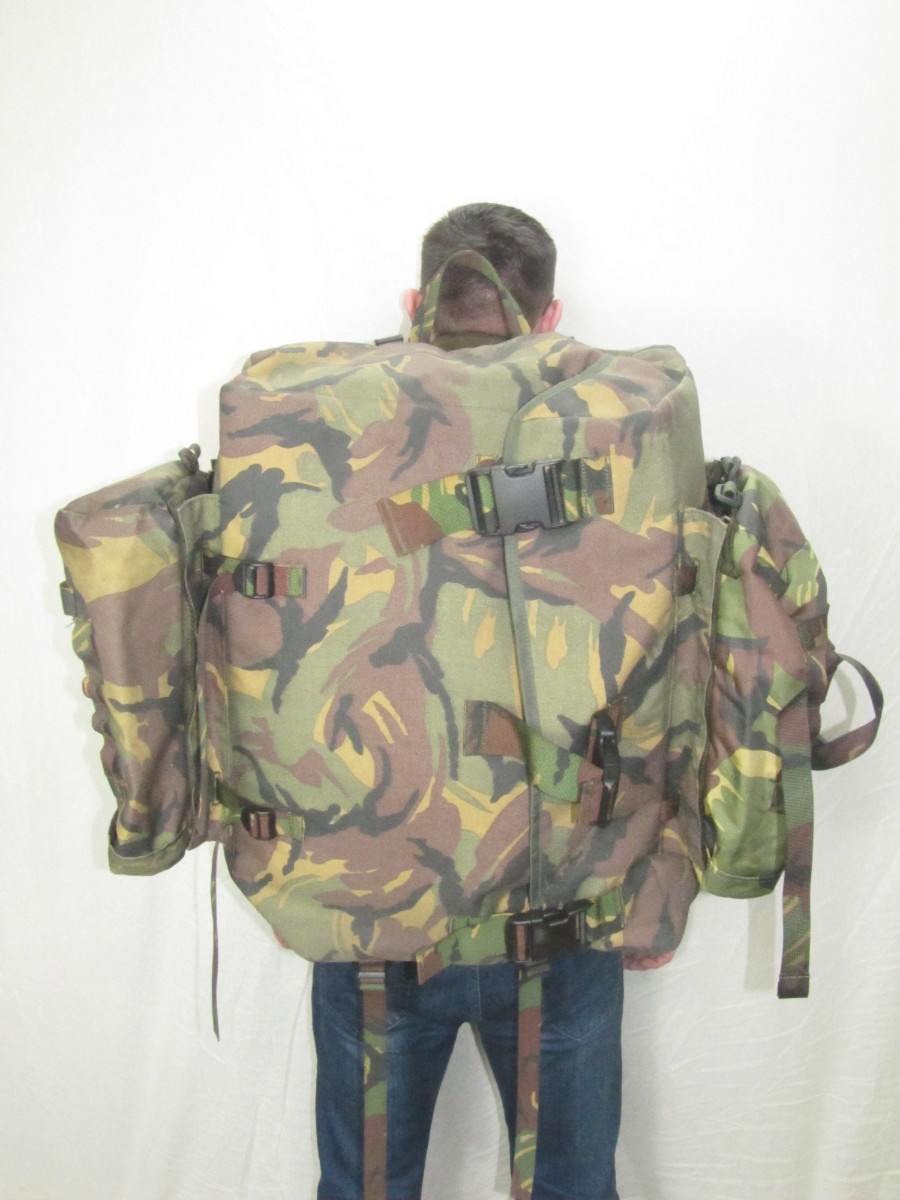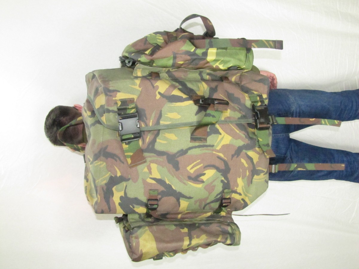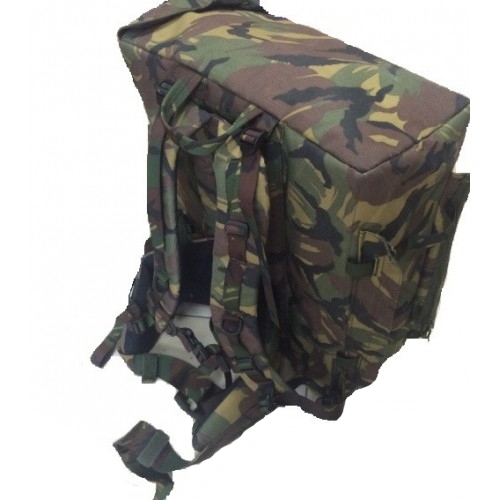 Ранец специального назначения сухопутных войск армии Голландии. Выполнен из высокопрочного материала, рассчитан на вес до 100 кг, лямки ранца, для придания дополнительной крепости, продублированы стропами. Внутреннее пространство ранца имеет правильную форму параллелепипида, что удобно для угловатых предметов,военные часто используют этот ранец для переносной радиостанции дальнего вещания. Имеется так же возможность регулирования плечевых лямок под конкретный рост. Поясничный ремнь достаточно широкий и усиленный с мягкой поролоновой подушкой, для комфортной переноски тяжелых грузов. Загрузка боковая, клапан крепится по бокам на вэлкро и спереди на трех мощных фастекс. Кордура очень плотная, выдерживает протыкание стальной проволоки, не промокает.