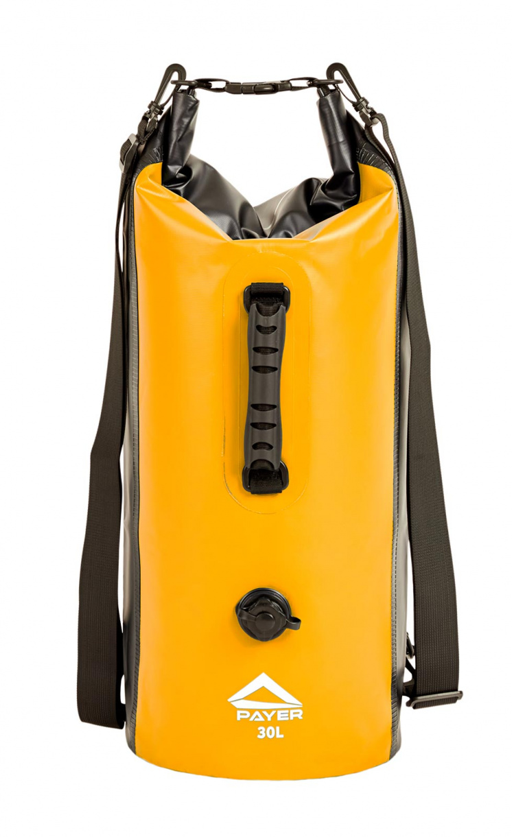 Гермомешок из очень прочного, современного материала тарпаулин с ПВХ покрытием. Гермомешок можно использовать как вкладыш в рюкзак или как самостоятельный элемент экипировки. Отлично подойдет для водных видов спорта, велосипедных прогулок, спелеопоходов или пляжного отдыха. Герметичность обеспечивается за счет скрутки горловины и фиксации ее на фастексы. Оснащен двумя широкими наплечными лямками для удобной переноски большого веса. При необходимости, лямки можно отстегнуть. На лицевой части расположена дополнительная ручка для транспортировки. Клапан в нижней передней части позволит спустить излишки воздуха, тем самым снизив занимаемый объем.