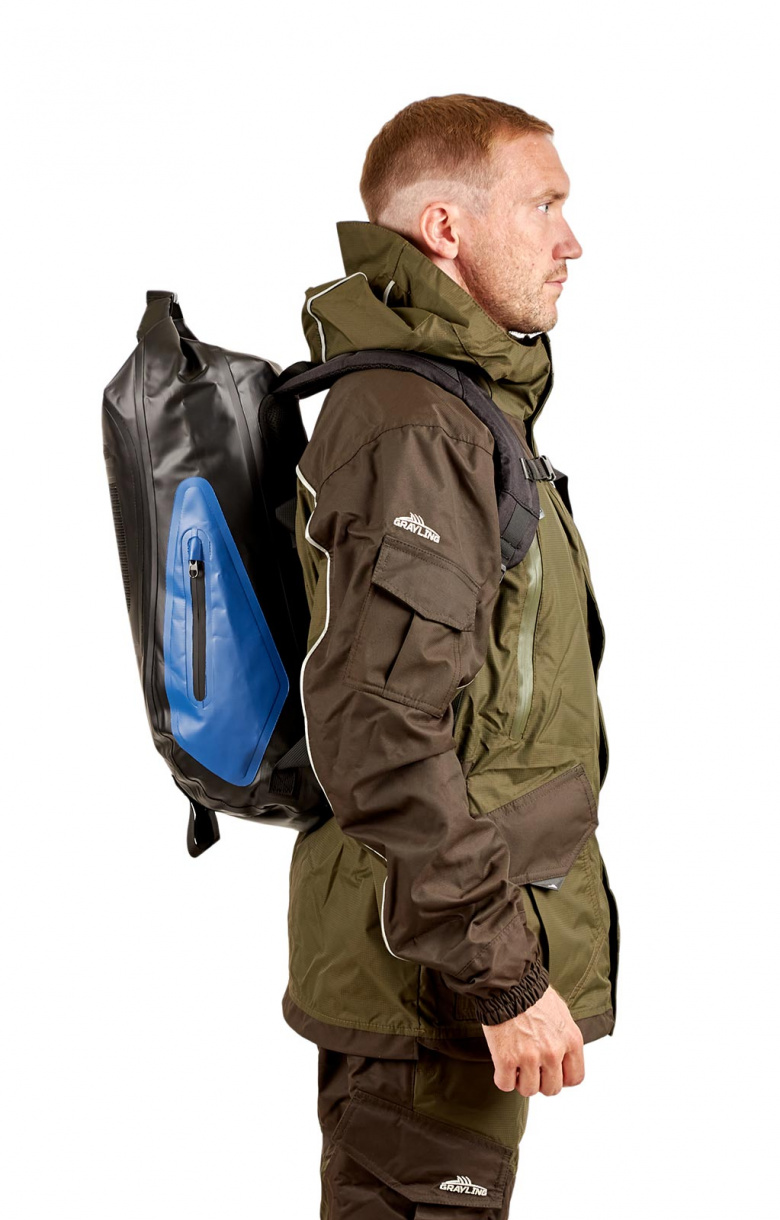 Вместительный герморюкзак для рыбалки. Абсолютно незаменим в дождливую погоду, а также на забродной рыбалке. Обеспечивает полную герметичность за счет скрутки верхней части гермомешка и фиксации ее на фастексе. Очень прочный современный материал тарпаулин с ПВХ покрытием. Оснащен удобной вентилируемой спинкой и широкими наплечными лямками. Имеет внешний карман из сетки, дополненный утяжкой и прорезной карман с влагозащитной молнией. Рюкзак оснащен светоотражающими элементами.