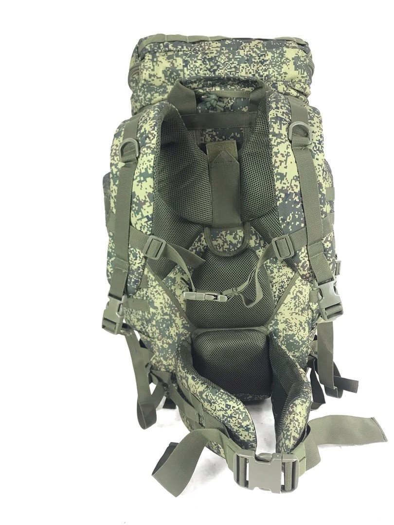 Система подвески выполнена по аналогии с туристическими рюкзаками: мягкие плечевые лямки, широкий и удобный пояс с MOLLE, подушки в области крестца и боковые подушки, которые обеспечивают дополнительную вентиляцию для спины. Подходит для переноски снаряжения во время полевых выходов, рейдовых задач.