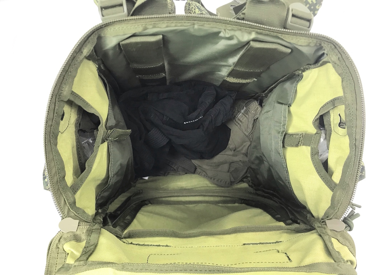5 внешних карманов отлично сочетаются с основным отделением. Узкая конструкция позволяет эффективно его применять в различных условиях как в горно-лесистой ( меньше цепляется за ветки деревьев) так и для действий в городе( узкие проходы и улочки, дверные проемы и т.д.).