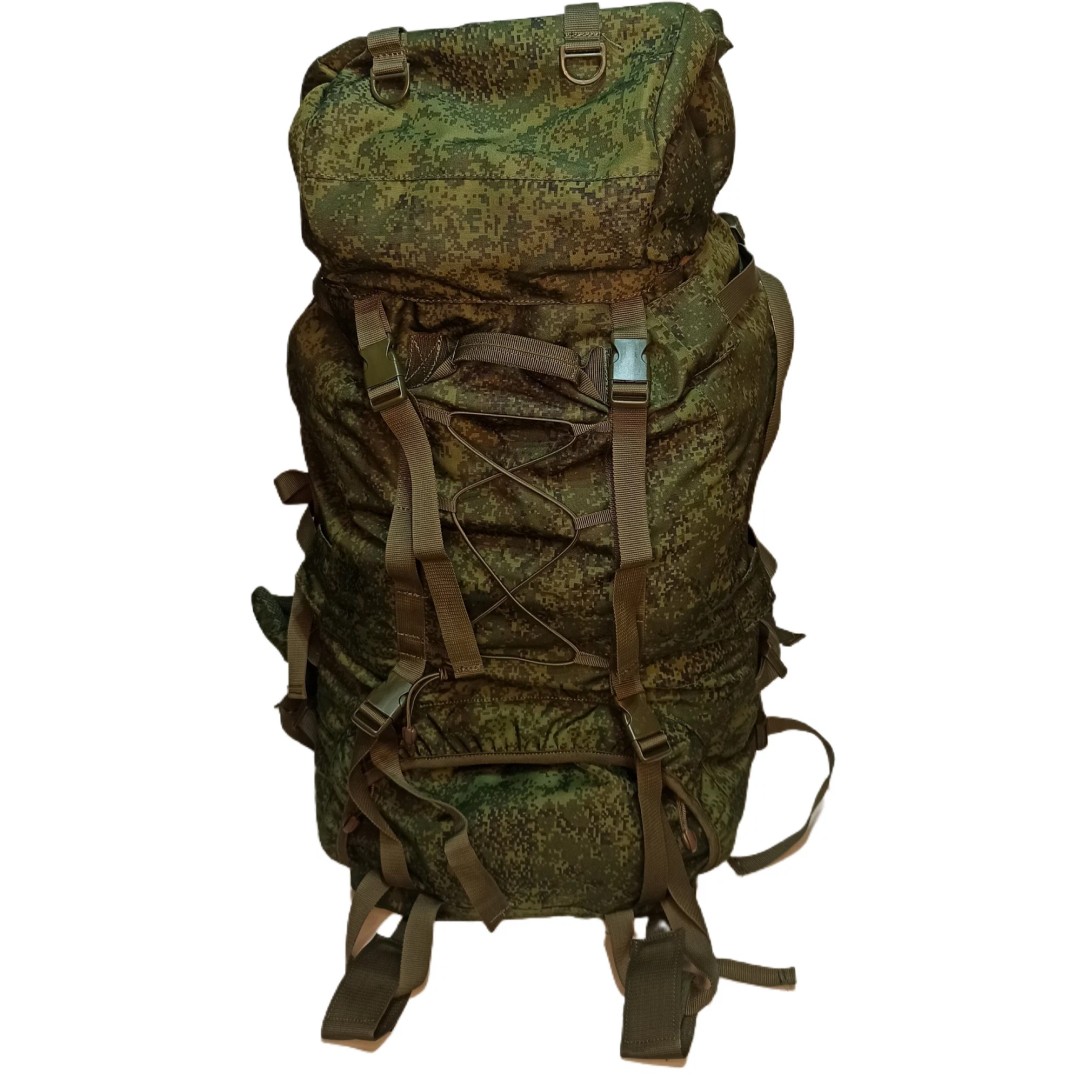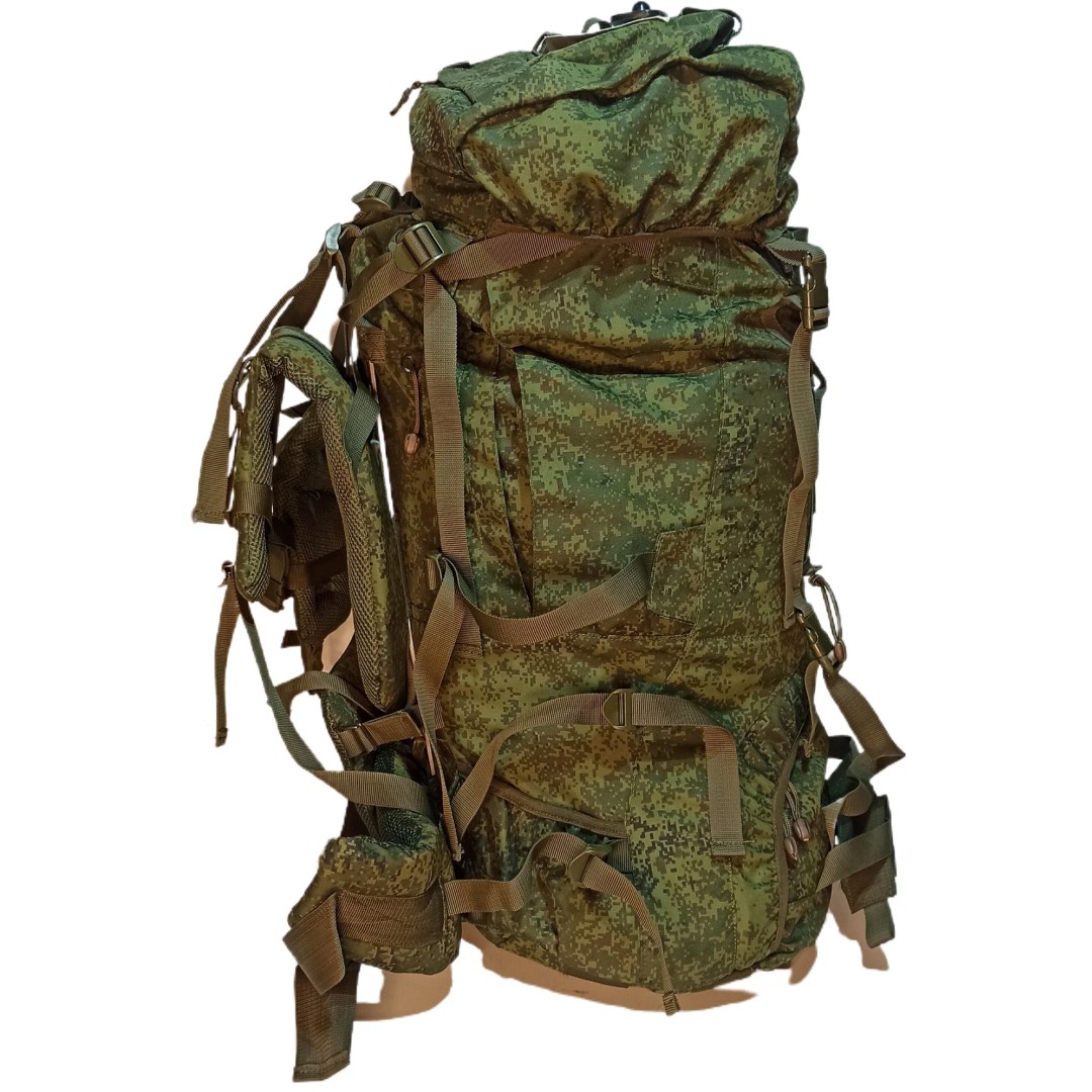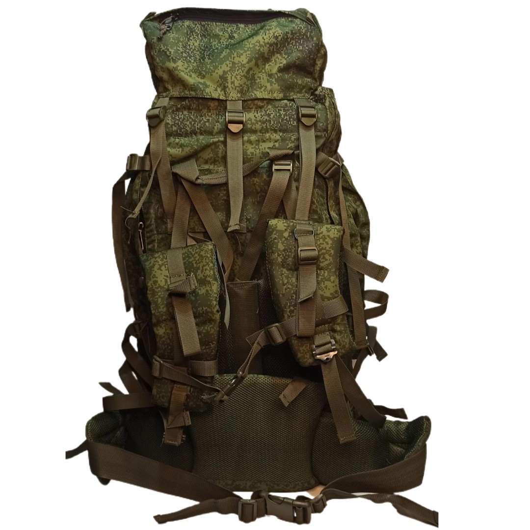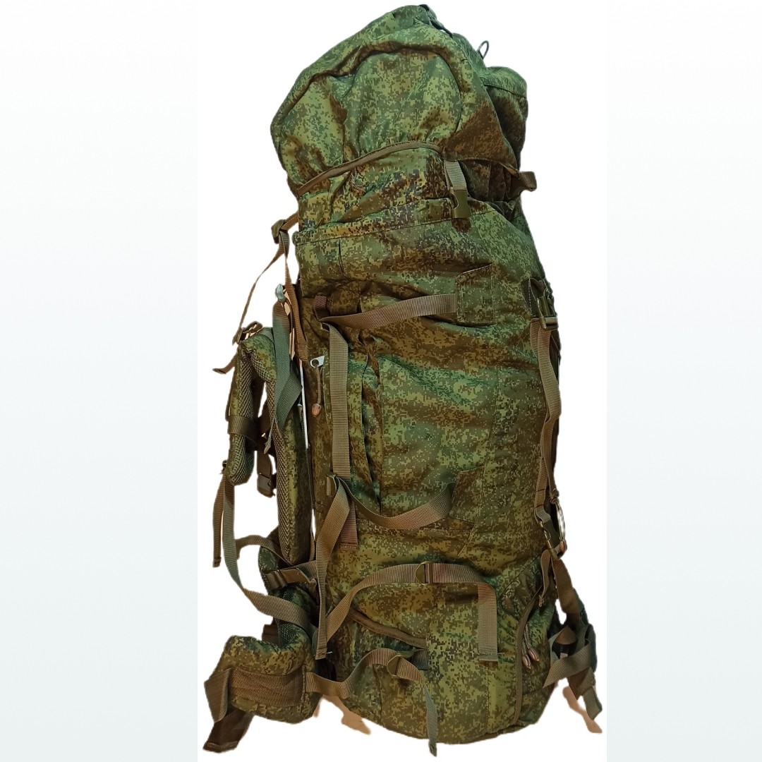 Рюкзак уставной армейский для спецназа. Альпинистский . Расцветка-цифра. Объем 80+20л. Размеры: 32 см x 25 см x 88 см. Рюкзак объёмом 80 литров с возможностью дополнительного увеличения объёма до 100 литров. Рюкзак с жёстким алюминиевым каркасом со стороны спинки, со множеством различных карманов и системой стяжек. Вес рюкзака 2660 грамм. В комплекте с маскировочным чехлом белого цвета. — рюкзак - ткань полиэфирная камуфляжной расцветки- цифра, с ПУ покрытием, арт. 3451 (ТУ 858-5799-2006);
