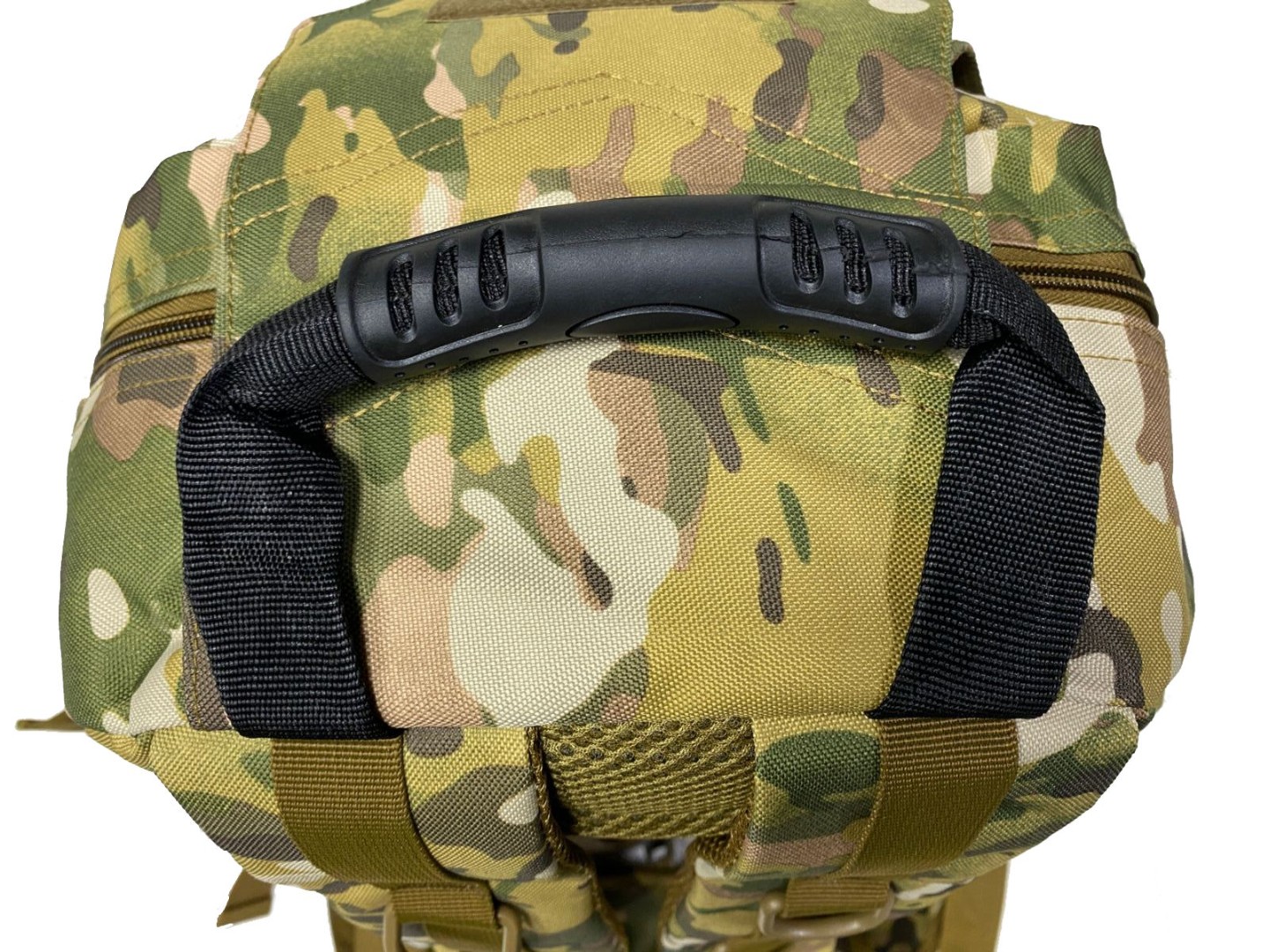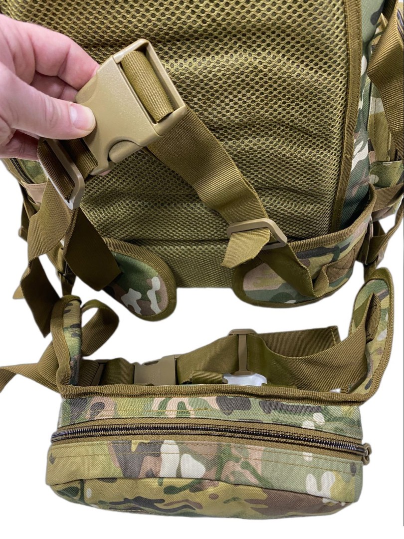 К рюкзаку на поясе прикреплен подсумок на молнии, подсумок закреплён при помощи дополнительного пояса и при необходимости может быть переставлен на заднюю часть рюкзака. По бокам рюкзака расположены небольшие карманы на молнии. На стропах расположены D-образные кольца для крепления мелочей или аксессуаров. Полужёсткая спина рюкзака оснащена вентилируемой подкладкой с мягкими  подушечками. Основное отделение внутри оснащено большим карманом,одно небольшое отделение на молнии позади основного отдела. Грудной и поясной ремень позволяет плотно фиксировать рюкзак к телу и облегчает нагрузку на спину.Стропы системы  Molle  для крепления подсумков ,расположены на боковой и задней части рюкзака.