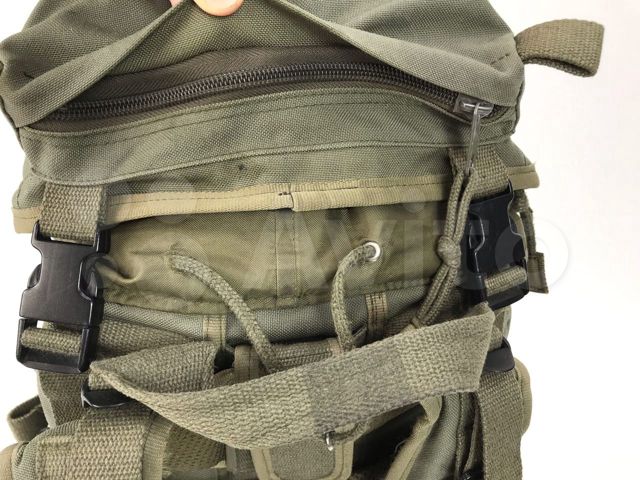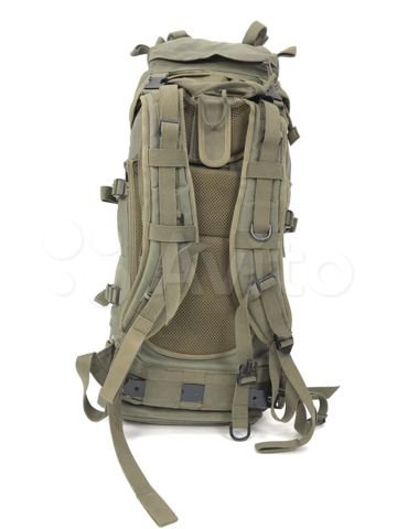 материал кордура на клапане, в нижней части, на боковых стенках расположены стяжки для крепления изомата, спального мешка, палатки, и т.п.- на передней части рюкзака система крепления для установки дополнительного снаряжения , кармана (большого или м-ки), чехла для лопаты, фляги, подсумков и т.д- 2 отделения, соединённые перегородкой со стяжкой- верхний клапан, прикреплённый к основному отделению на 4-х фастексах, регулируется по высоте.- малый карман в передней части рюкзака на липучке для кавера, на клапане, на днище рюкзака.- внутри основного отделения находится алюминиевый каркас для жёсткости спины, предусмотрена возможность регулировки рюкзака по росту.Cистема быстрого сброса. "дышащая" На спинке рюкзака предусмотрена быстроразьемная схема соединения рюкзака с тактическим поясом (тактический пояс в комплект не входит).Цвет хаки отлично подходит практичекси к любой расцветке камуфляжа .