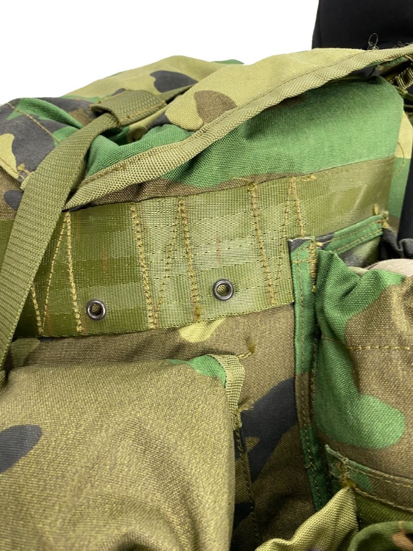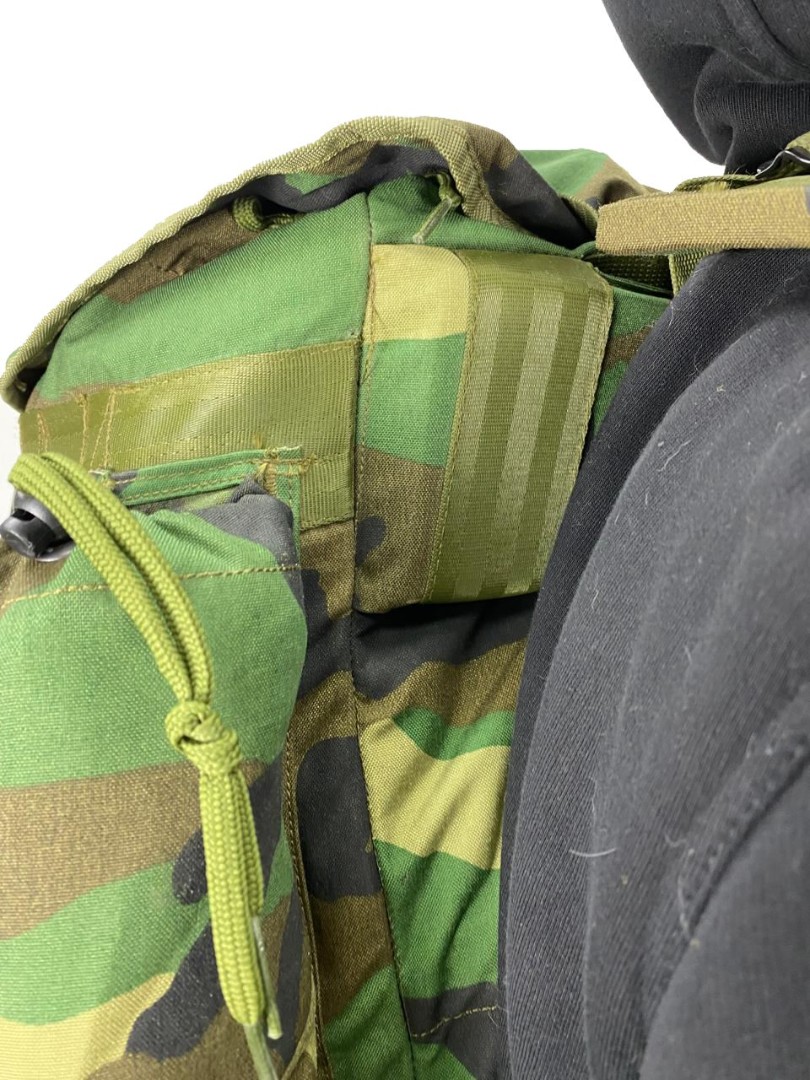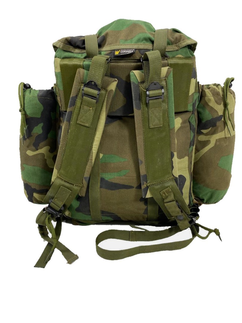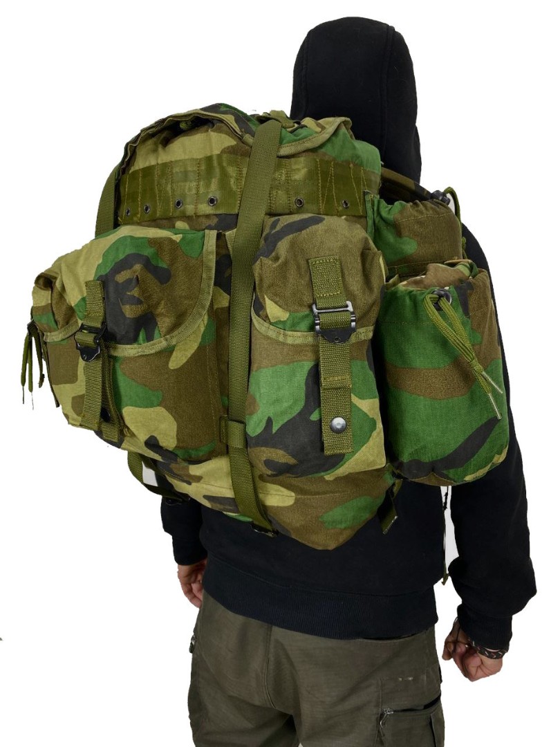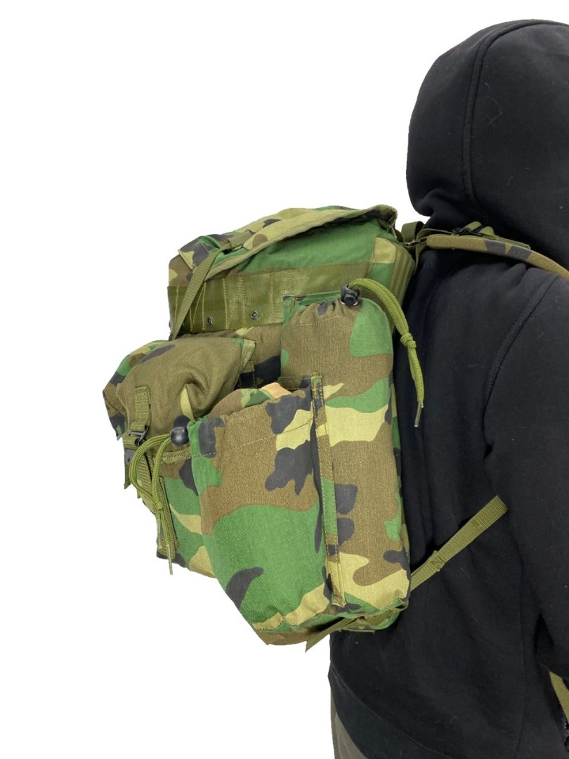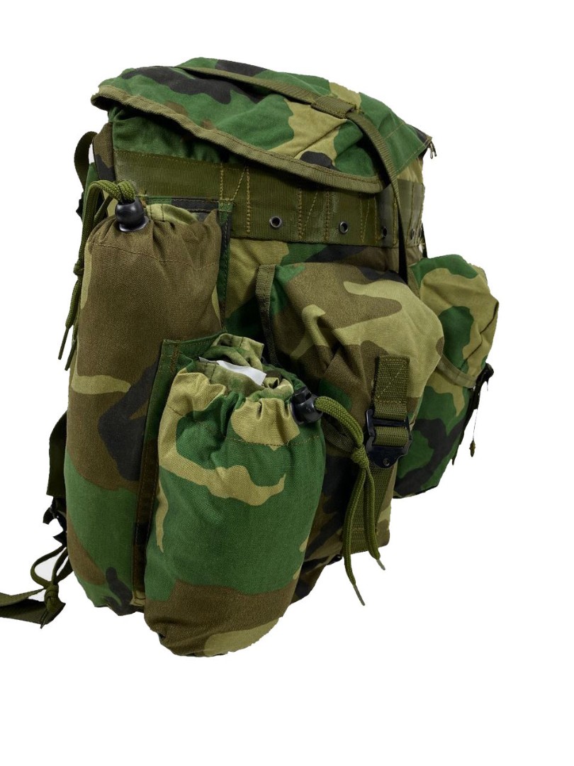 Станковый рюкзак (аналог Американского alice, использовался в войсках армии США. Рюкзак исполнен в камуфляжной расцветке Woodland. Станковый каркас так называемая рама состоит из алюминиевых легких трубок весом в 1.5 кг и размерами 50х30х10.