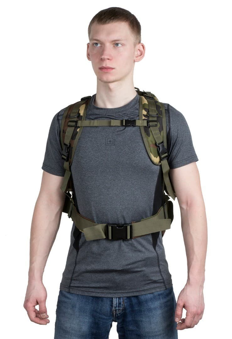 Регулируемые лямки с грудной и поясной перемычкой обеспечивают надежную посадку и равномерное распределение веса, что идеально подходит для долгих походов и активных действий.