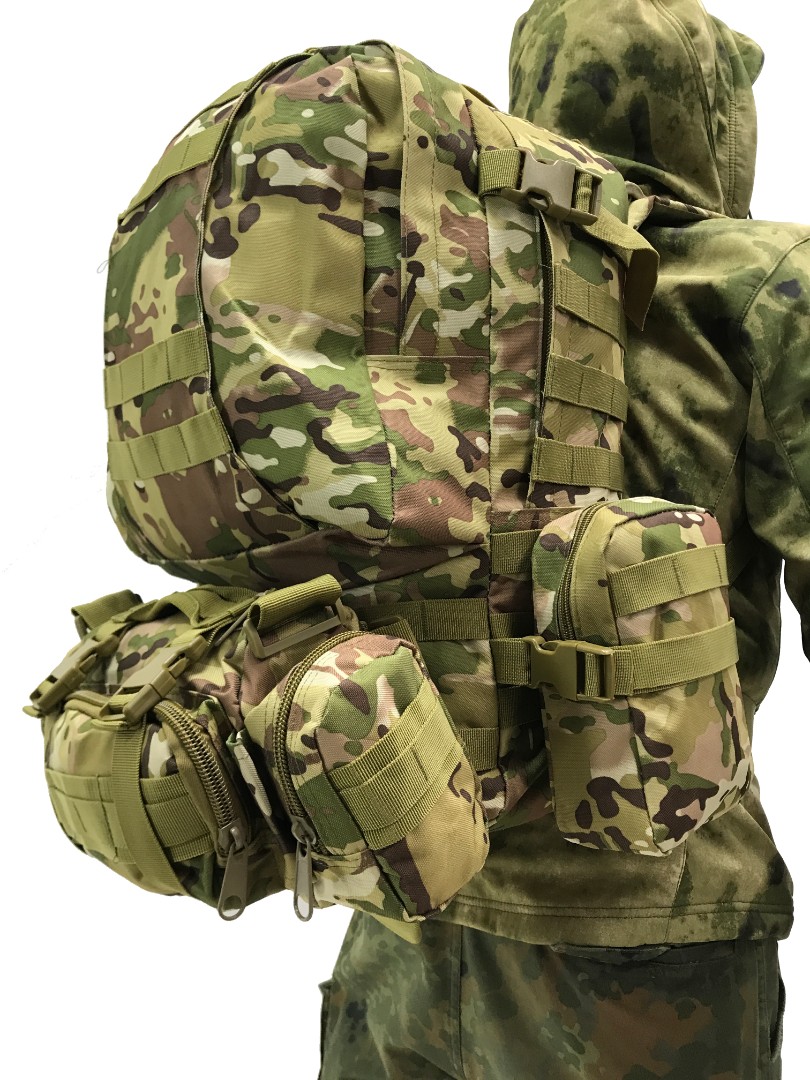 Тактический рюкзак с подсумками примерным объёмом около 40 литров - удобный и прочный универсальный рюкзак для различных задач.