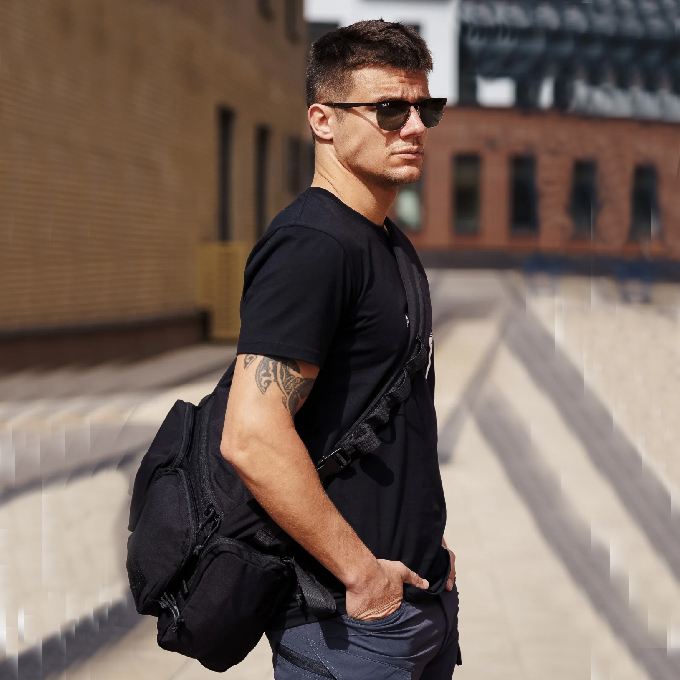 Сумка представлена в трех расцветках — черной, серой и хаки, которые отлично сочетаются как с повседневным, так и с тактическим'