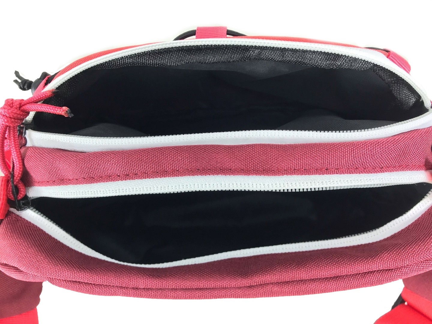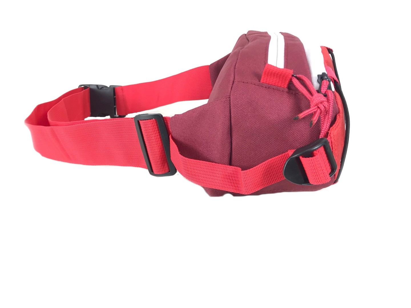 Лёгкая, поясная cумка с логотипом.Регулируемая лямка с фастексом, по бокам сумки располагаются лямки для лучшей фиксации. Два отделения на молнии закрывающиеся на молнии.