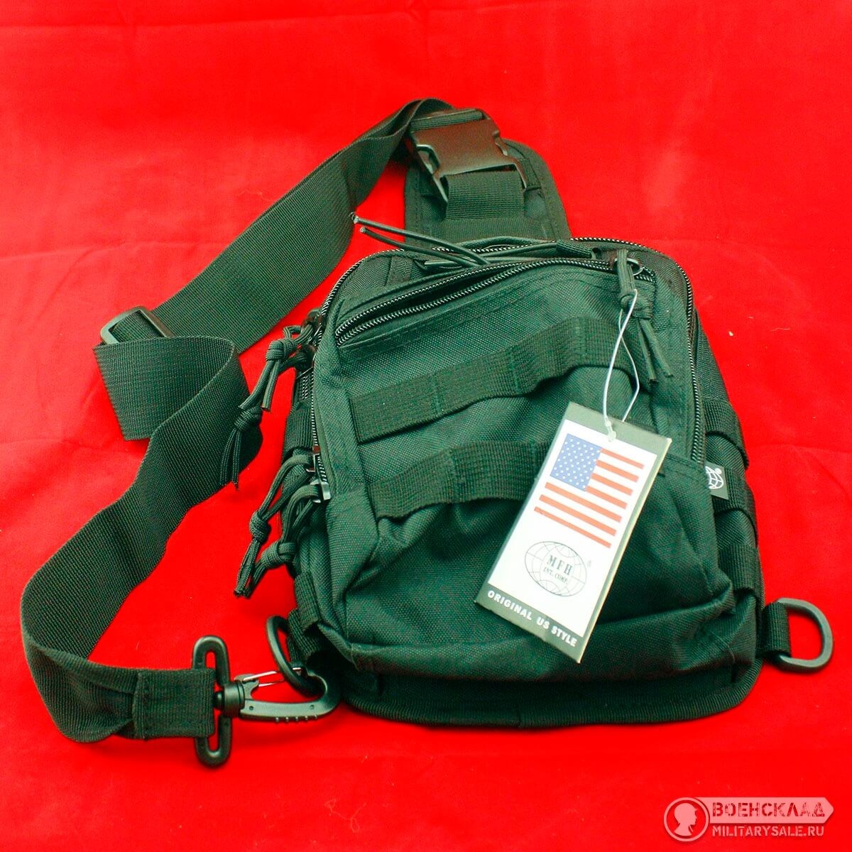 Сумка от MFH оснащена большим передним отделением с 2 внутренними прорезными карманами, накладным передним карманом с внутренним отсеком, большим прорезным отделением сзади, фиксирующим ремнем и карабином.