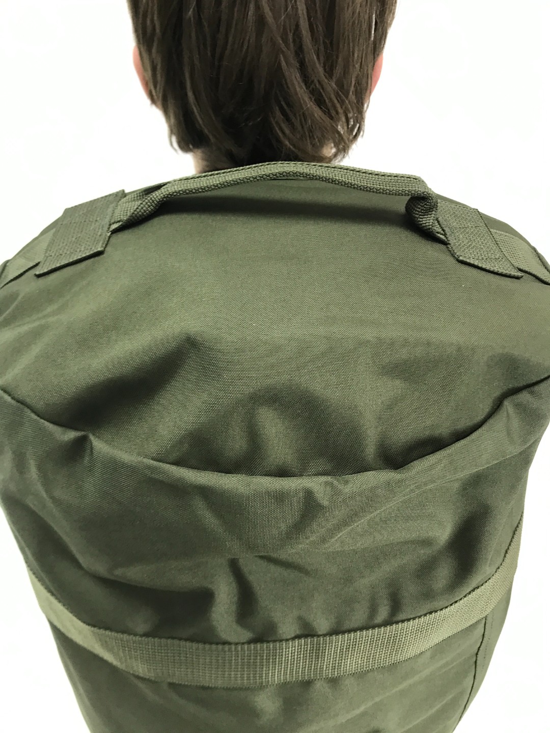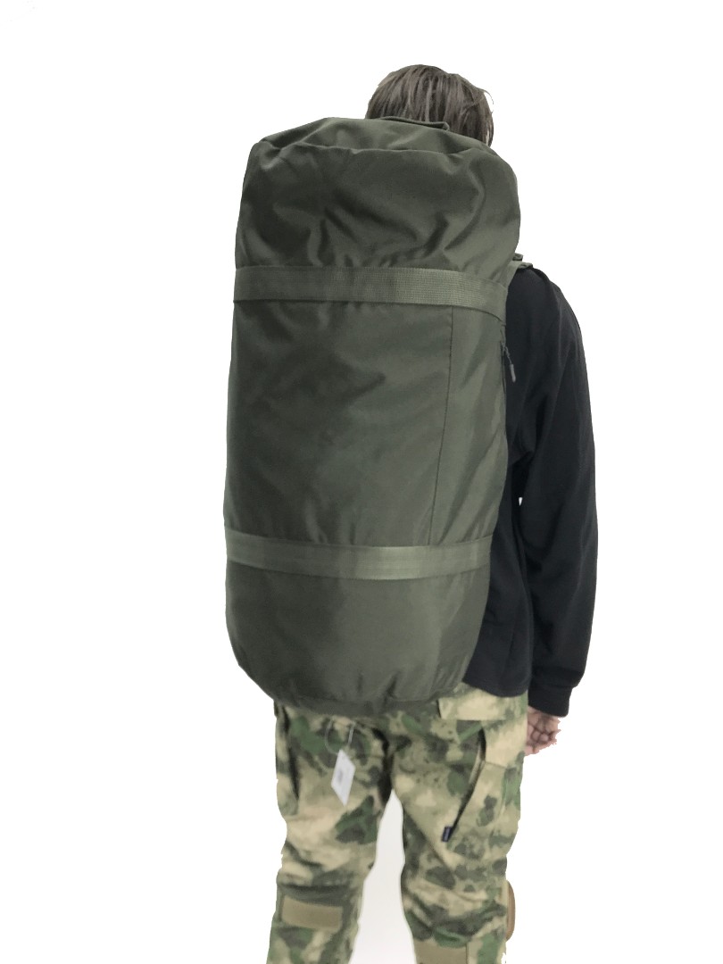 Баул с функцией рюкзака для складирования/транспортировки вещей.Одно большоё отделение закрывается при помощи клапана на двух молниях которые защищены тканью и открываются при помощи липучек.Внутри в боковой,верхней части расположен карман на молнии.Две регулируемые лямки прочно закреплены при помощи дополнительной ткани в верхней и нижней части,нагрудный ремешок фиксирует лямки и при необходимости можно регулировать высоту ремешка.В боковой части рюкзак расположен небольшой карман на молнии.С двух сторон на бауле расположены крепкие,тканевые ручки для удобства переноски.