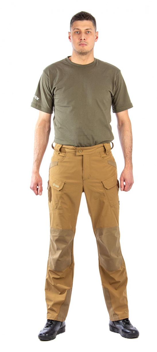 Материал: софт-шелл на трикотаже, цвет койот, состав 90% пэ, 10% спандекс, плотность: 190 г/м2