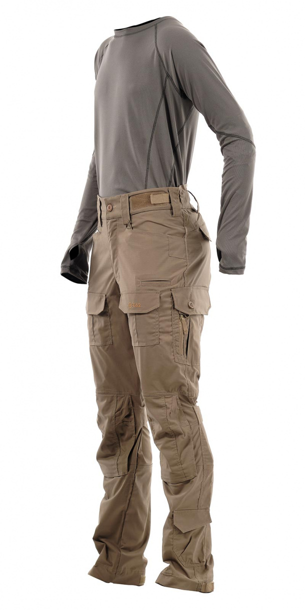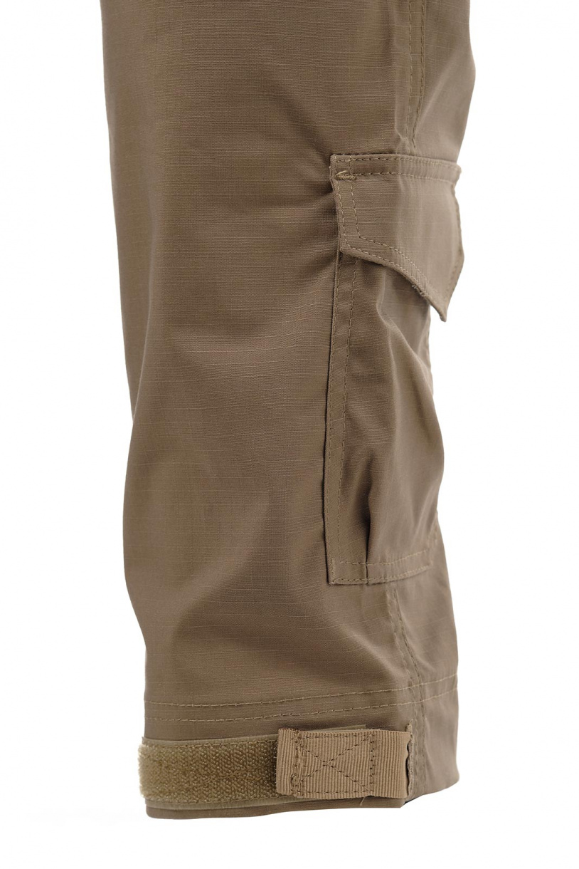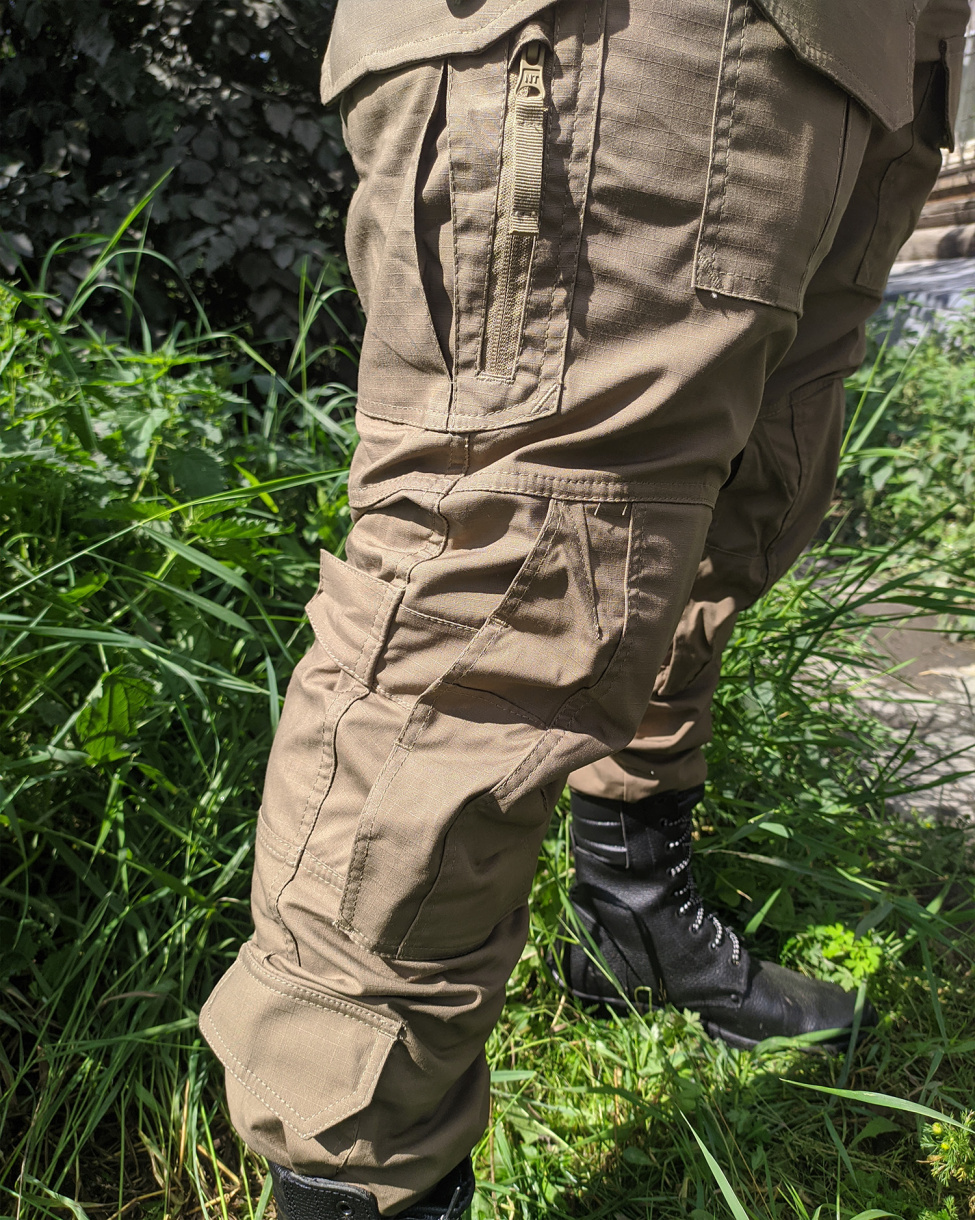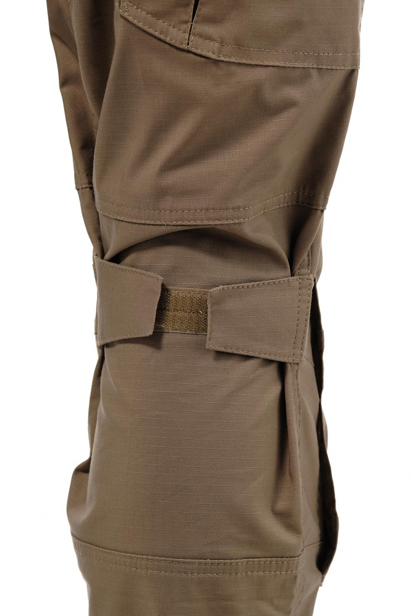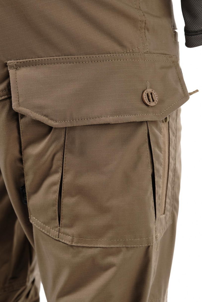12 функциональных карманов, в том числе карманы для удобного использования в положении сидя. Зона колена усилена, предусмотрен отсек для наколенников. Тефлоновое покрытие упрощает уход за изделием.