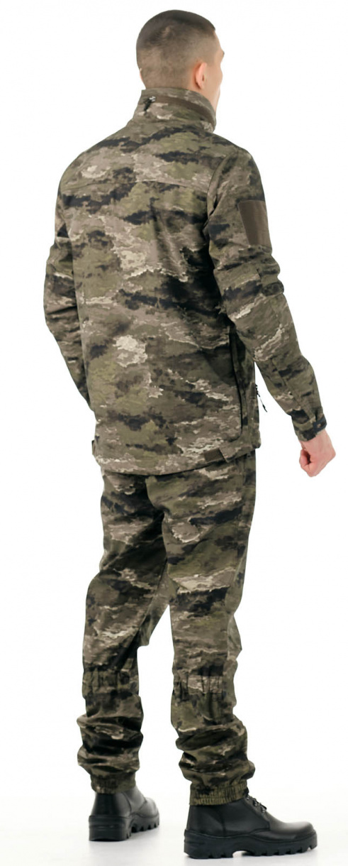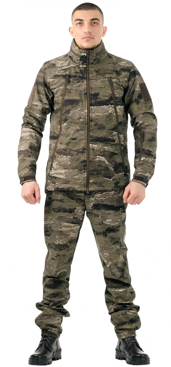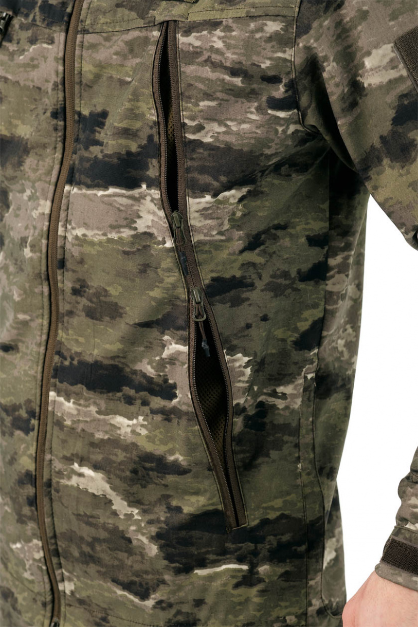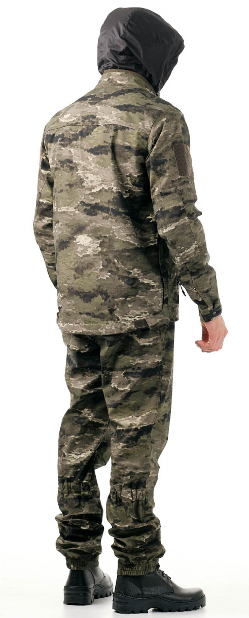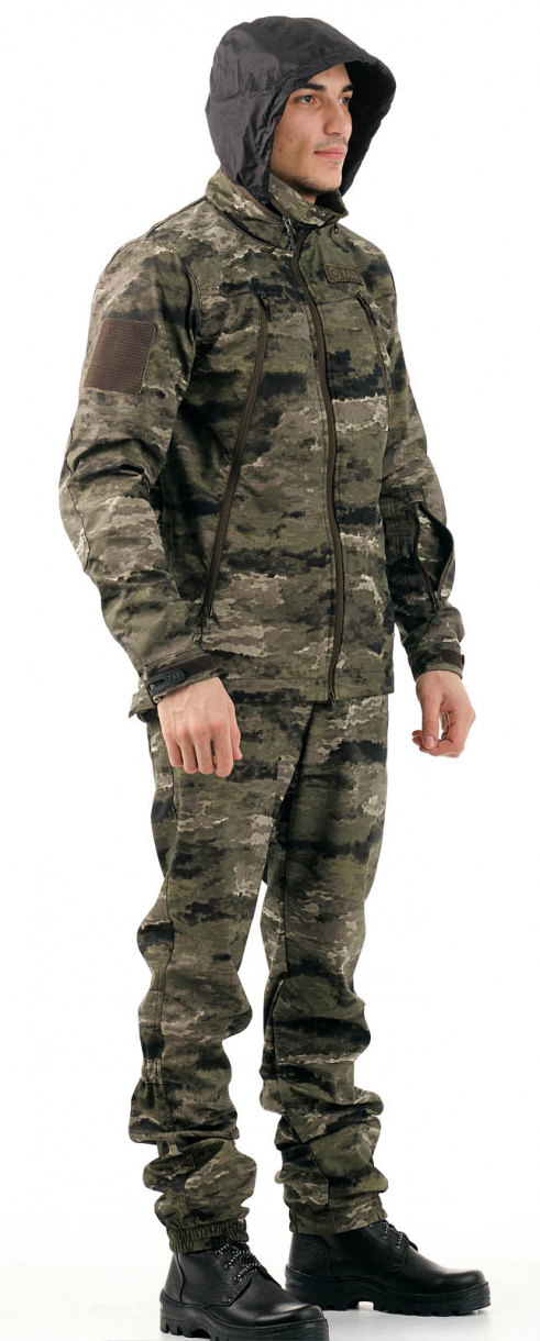 Костюм «Альфа» тактического направления (ТМ 7.62) из современного инновационного материала софт-шелл, представляющего собой единое полотно из трех слоев: трикотаж, мембрана, трикотаж. Такое сочетание обеспечивает защиту от порывов ветра и дождя, отличное влагоотведение, сохранение тепла. Само изделие при этом имеет небольшой вес (компактное) и эластичность (не стесняет движений). Тефлоновая обработка костюма позволяет каплям воды и загрязнений легко скатываться с поверхности, уменьшая таким образом количество стирок.