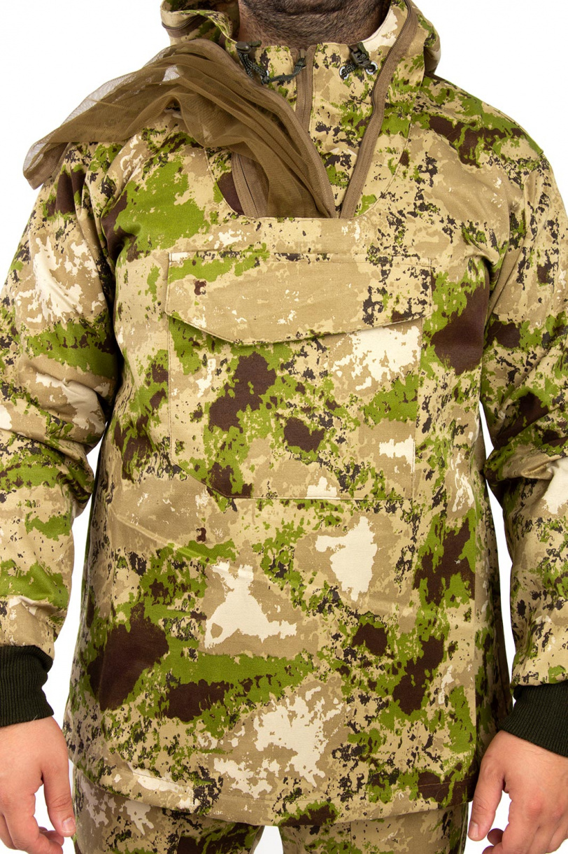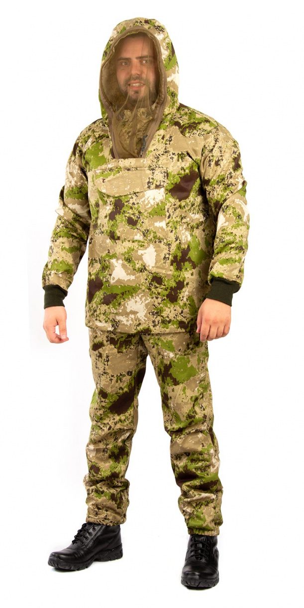 Сетка накомарника съемная и легко убирается в потайной карман. Плотная ткань создает надежную защиту, позволяет телу «дышать» и надежно защищает от насекомых. Рукава оснащены плотными трикотажными манжетами. Этот костюм отлично подойдет для всех, кто много бывает в лесу.