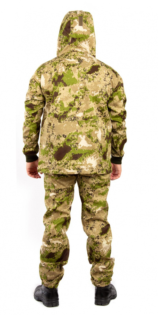 Костюм «Антигнус» в расцветке тундра представляет собой классический противоэнцефалитный костюм. Он состоит из куртки типа «анорак» с капюшоном и брюк прямого кроя.